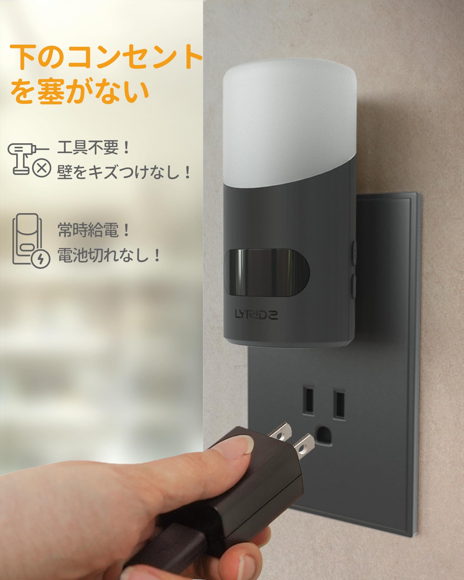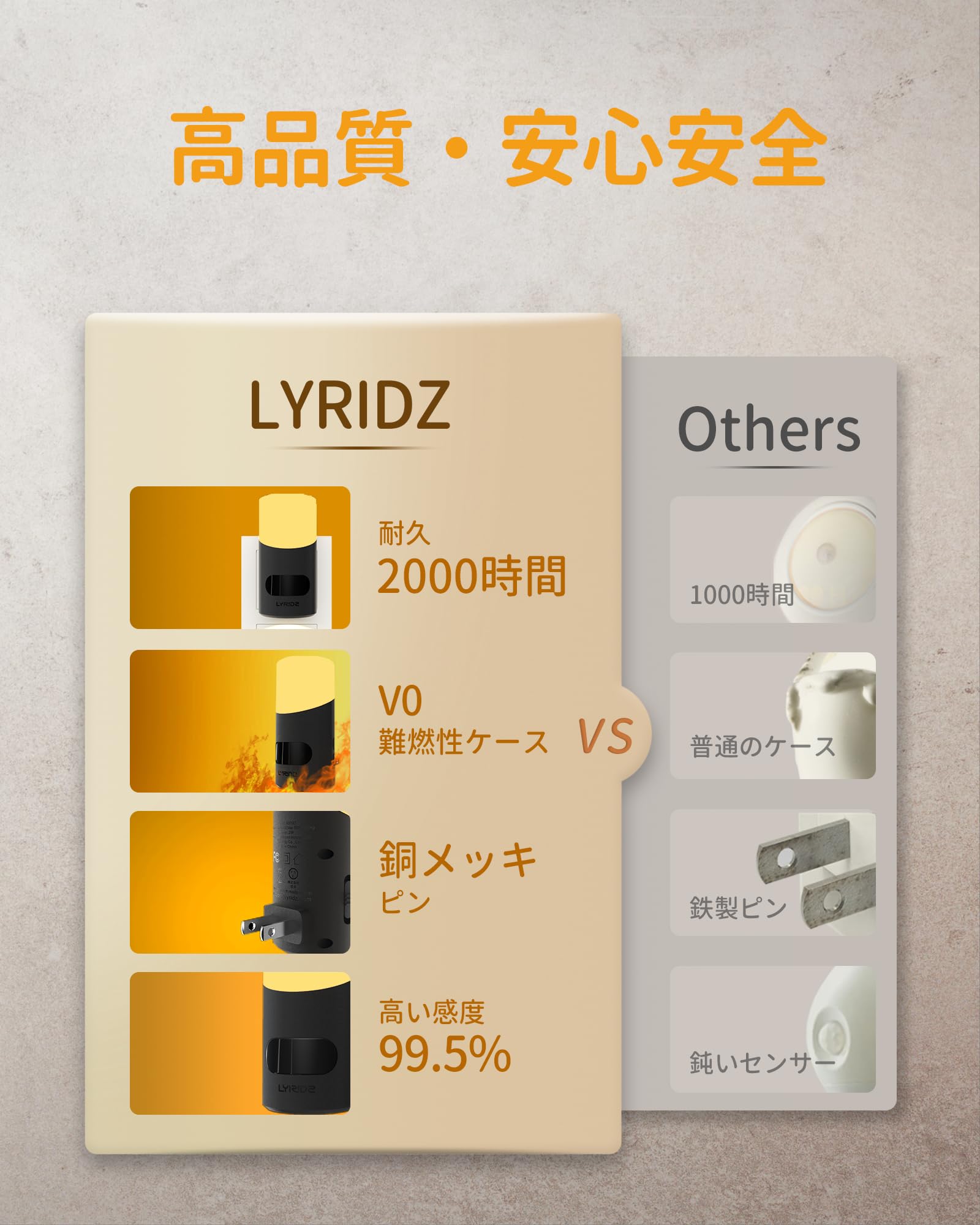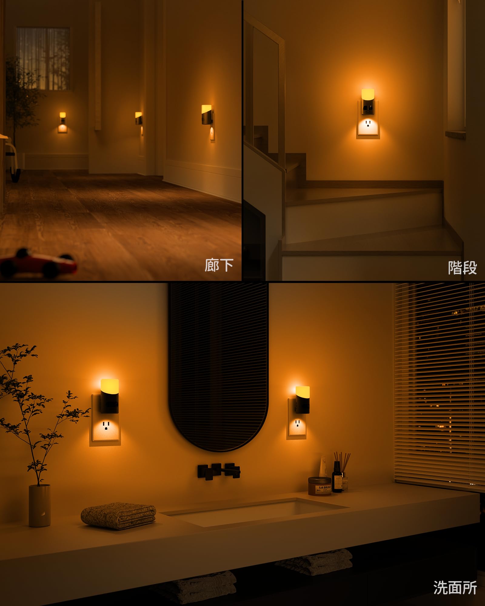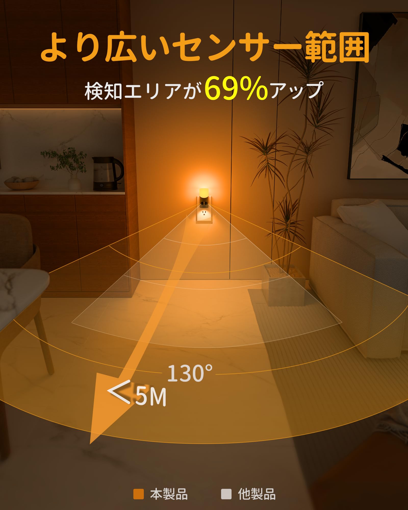 Lyridz 人感センサーライト 室内 センサーライト コンセント 足元灯 超高輝度150ルーメン 明るさ調節・点灯時間設定可能 フットライト 省エネ 廊下 寝室 玄関 階段 琥珀色 2個セット