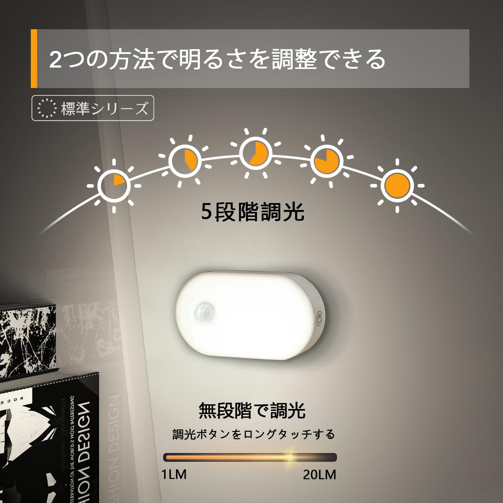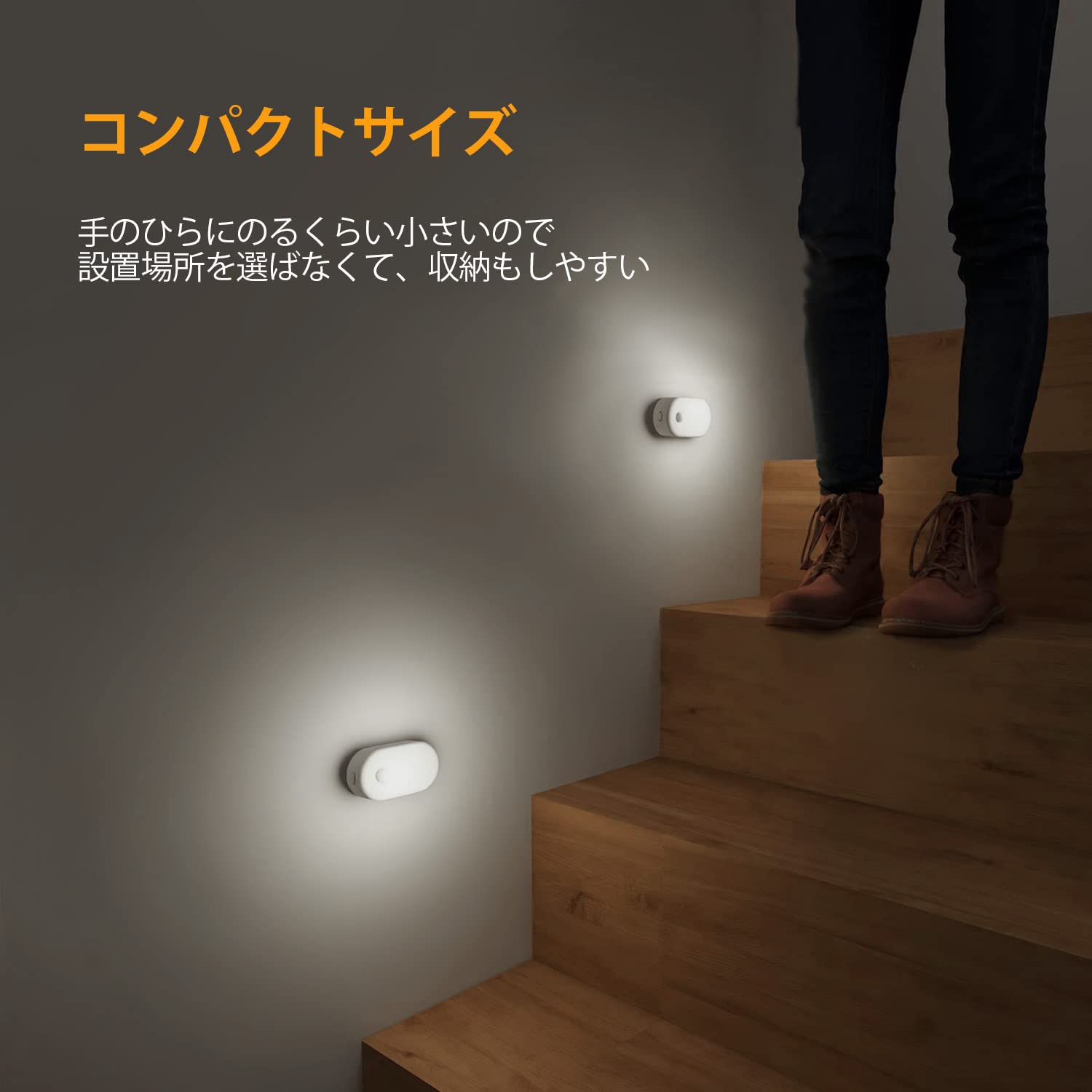 4pcs 小型LEDランプ人感センサーランプUSB充電式室内明暗センサーベッドヘッドライト ニュートラルホワイト6000K、電球色3000K、2色のライト、磁石両面テープ付き4パック