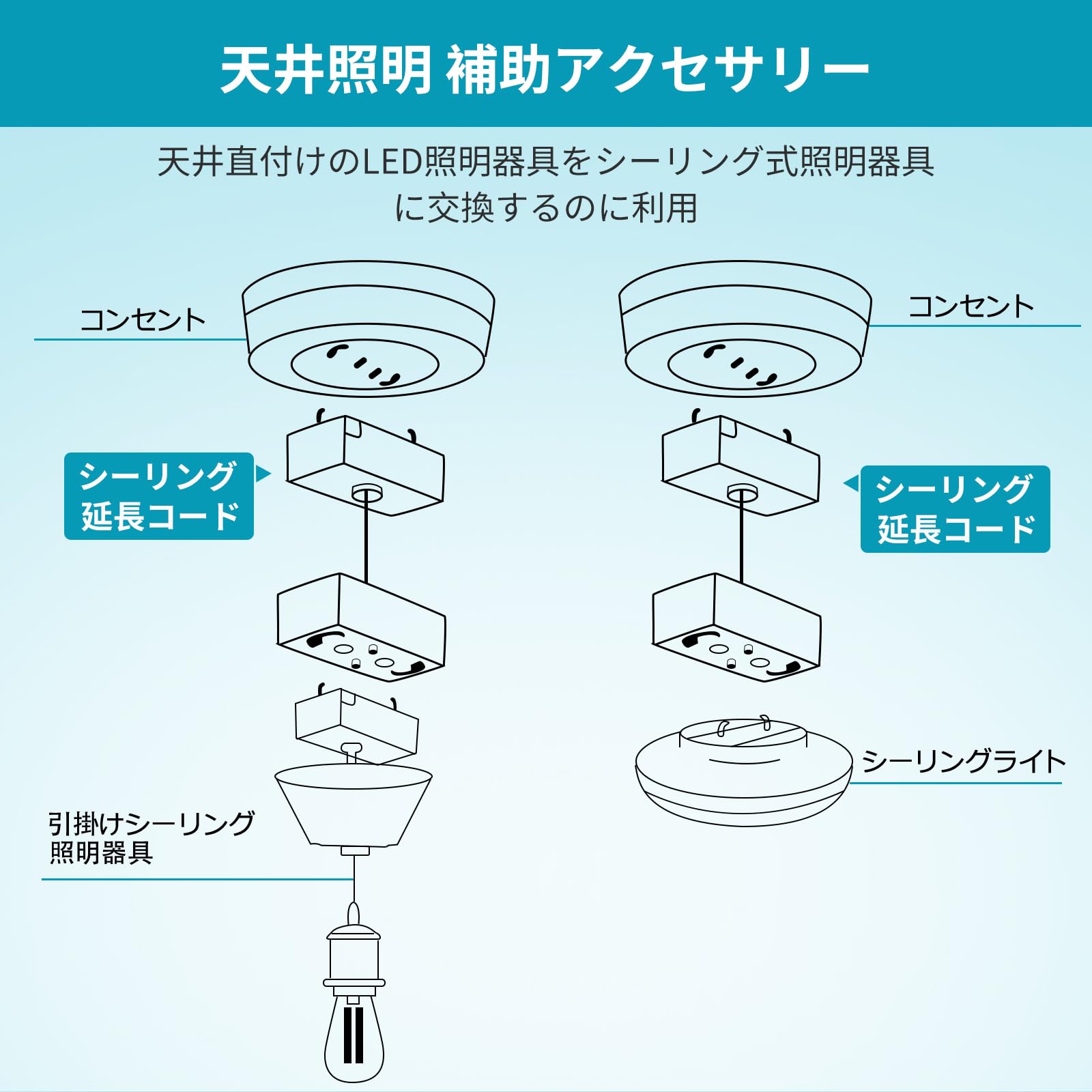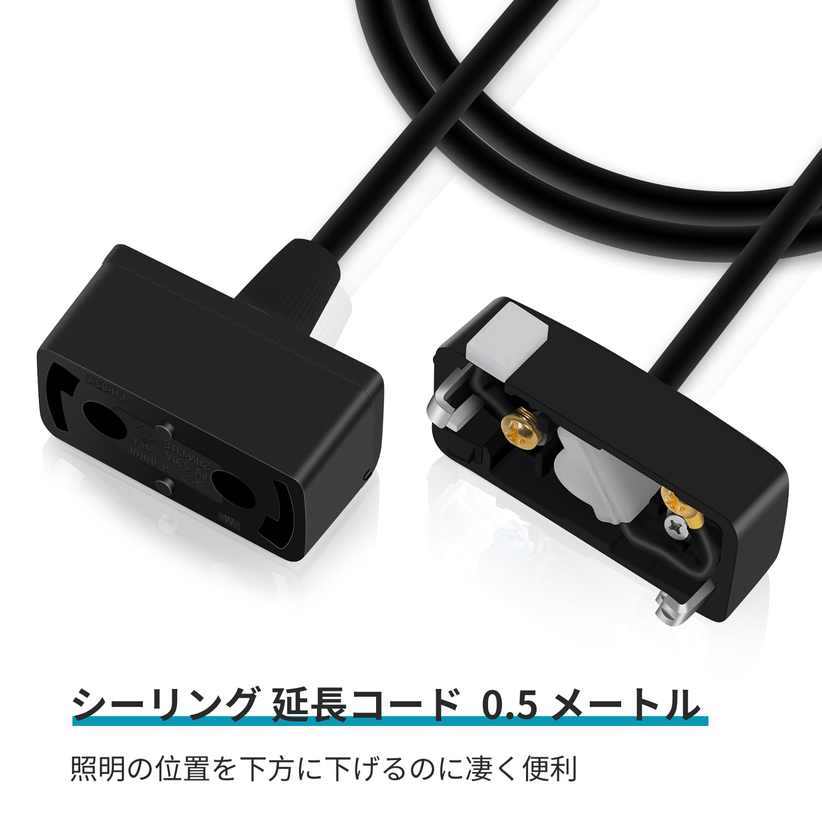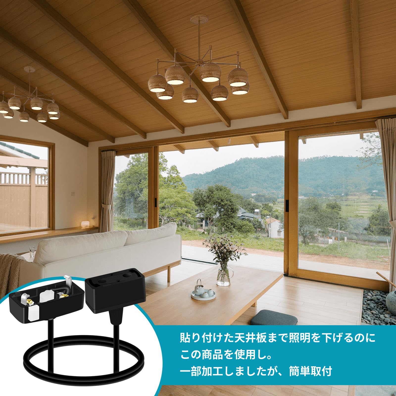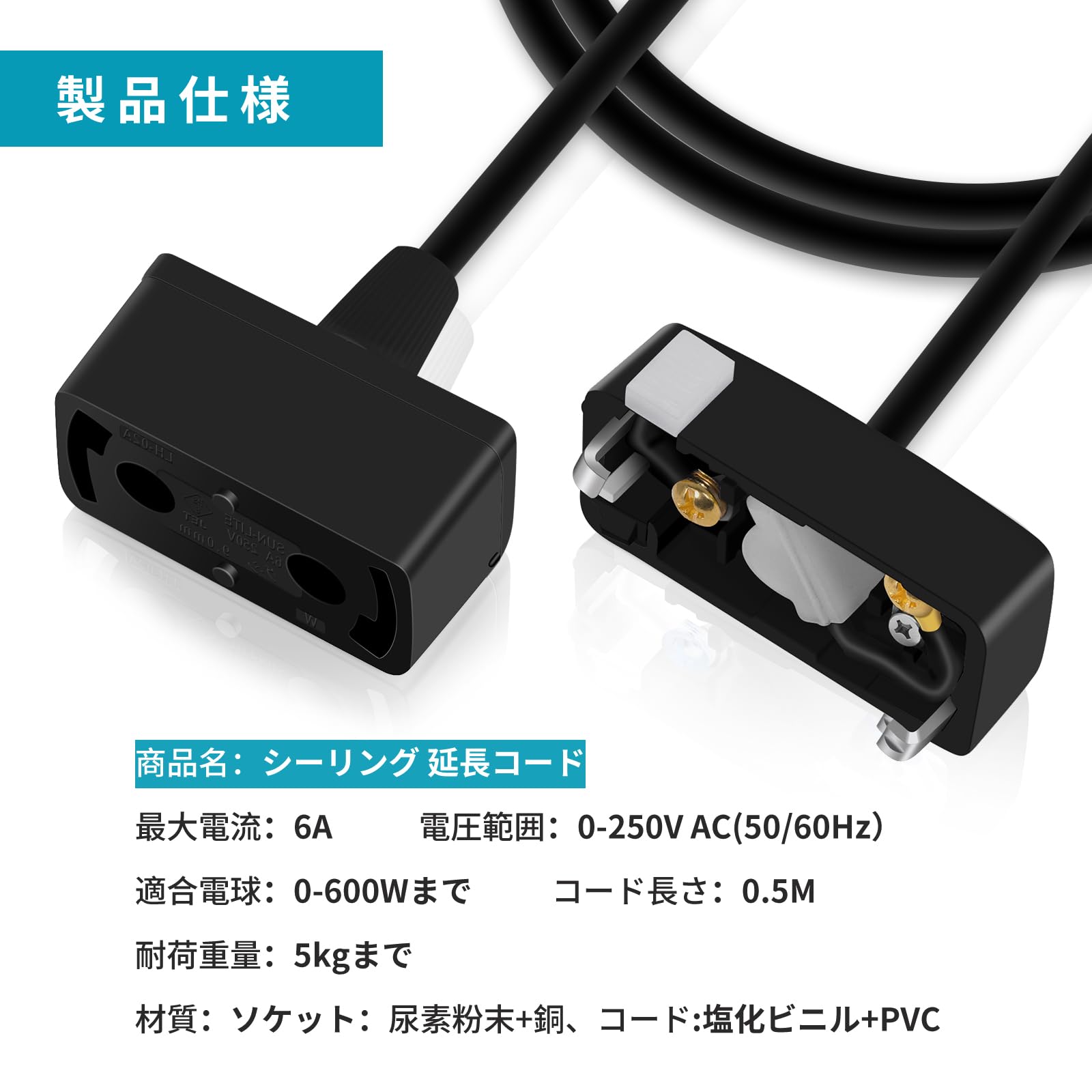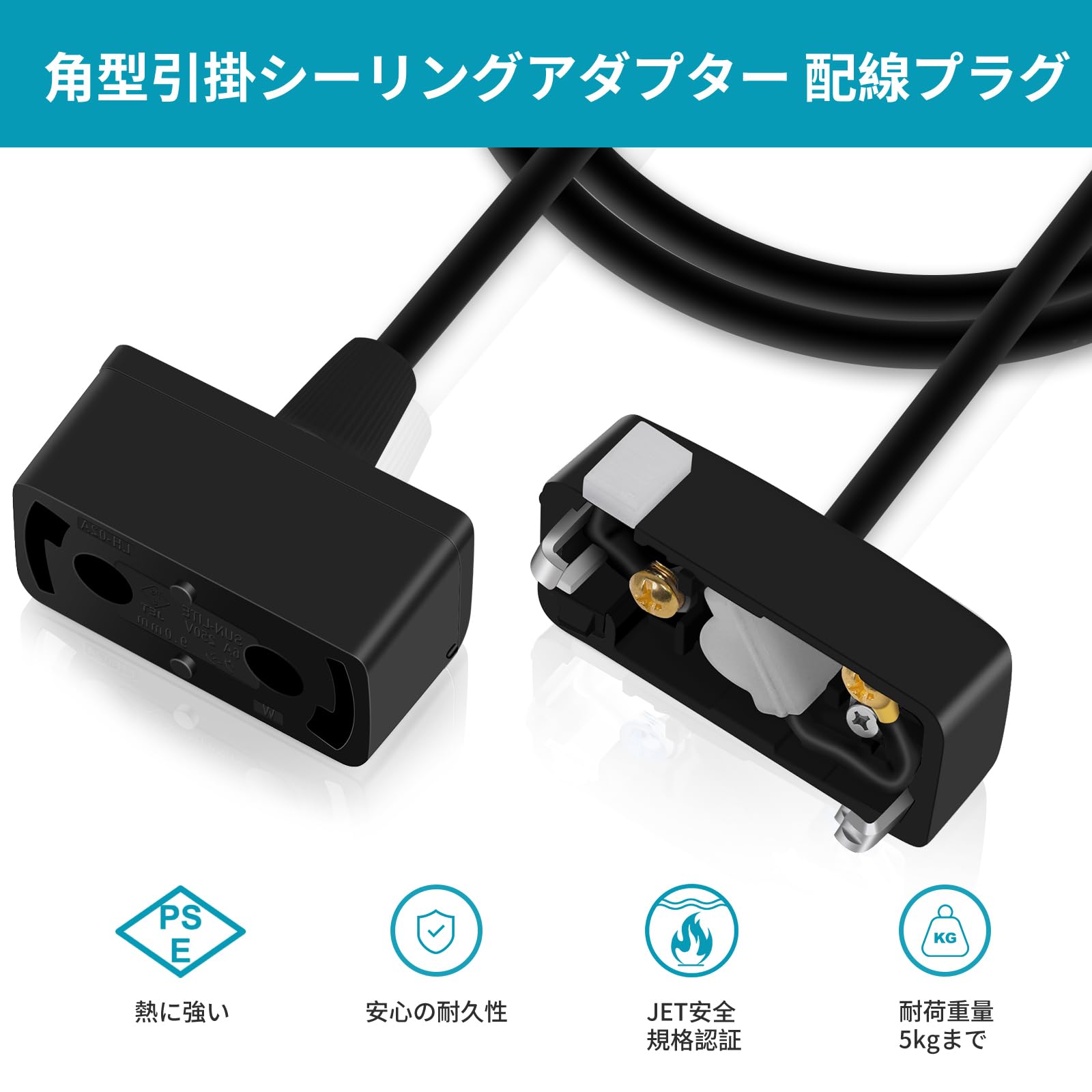 Pispoer|シーリング 延長コード|角型引掛シーリングアダプター 配線プラグ|延長コード付き 0.5M|シーリングライト天井照明 補助アクセサリー|おしゃれ|簡単取付 工事不要|PSE認証|ブラック|1個セット