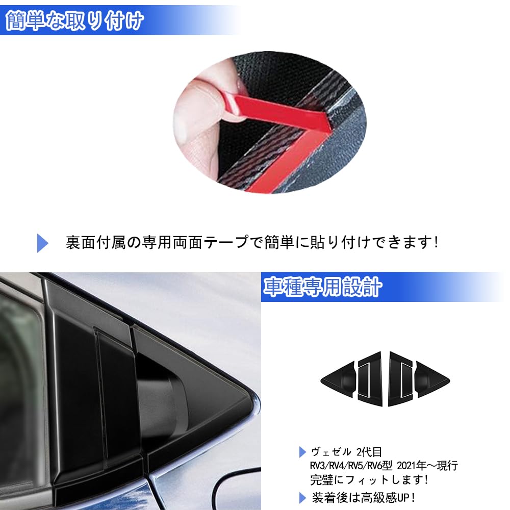 【適用車種】:ホンダ・ヴェゼル 2代目 RV3/RV4/RV5/RV6型 に適合 2021年~現行(スポーツサイドバイザーを装備した車の場合、干渉するので取り付けが不可能でした)