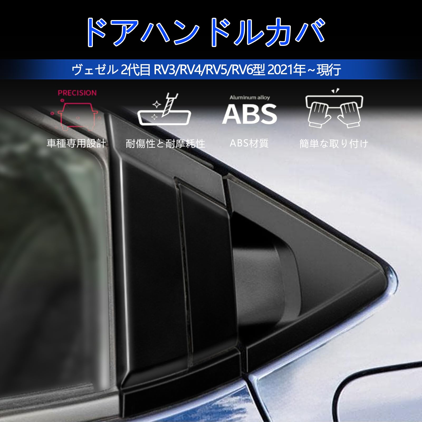 【GIKAKU】FOR ホンダ ヴェゼル 新型VEZEL RV3 / RV4 / RV5 / RV6 に適合 専用 アクセサリーパーツ ドアハンドルカバー 外装パーツ (ピアノブラック)