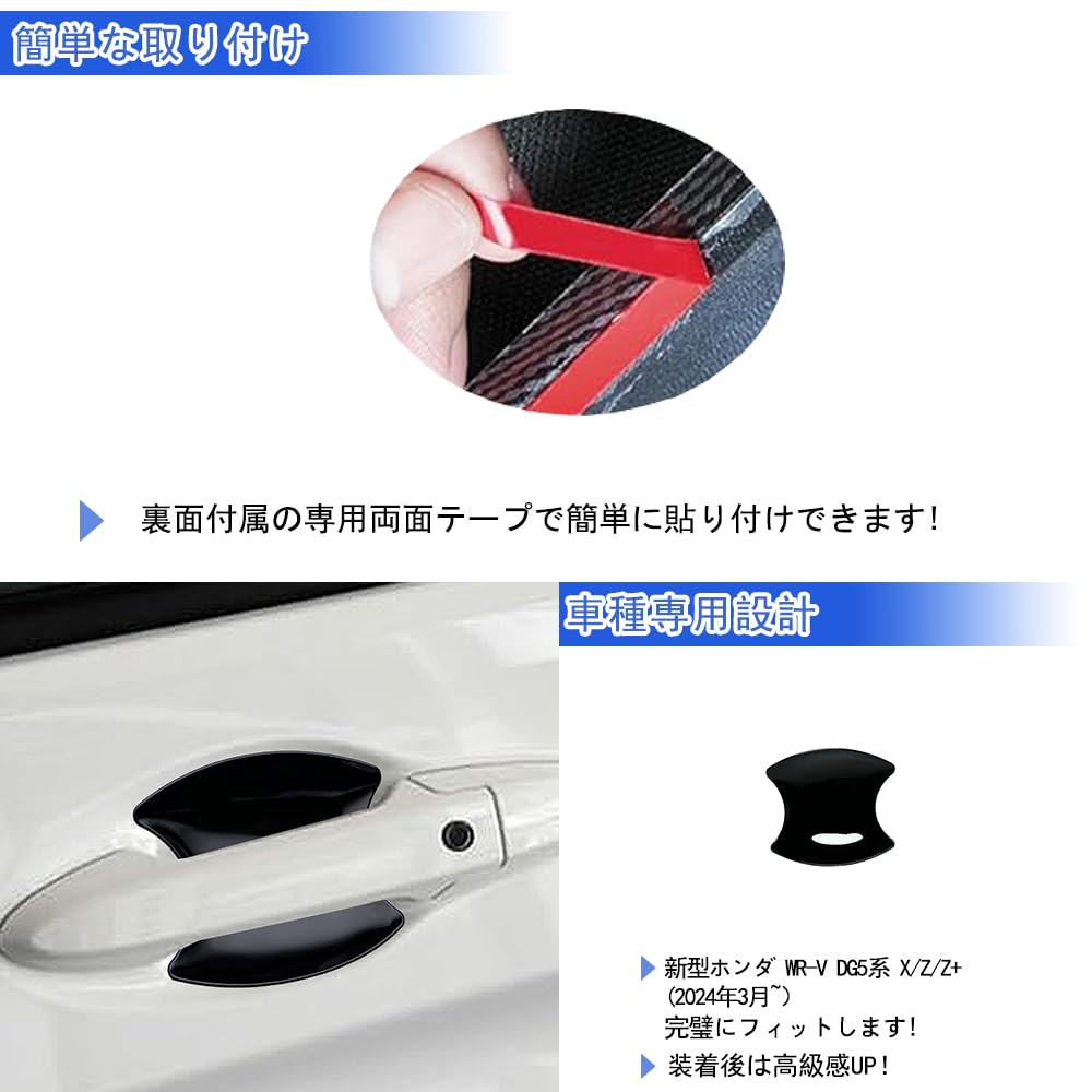 【GIKAKU】Forホンダ 新型WR-V DG5系 X/Z/Z+ アクセサリー 外装パーツ ドアハンドルプロテクター ドアハンドルガーニッシュ ドアハンドルカバー ドレスアップ 傷防止 保護パーツ 車種専用設計 (ピアノブラック)