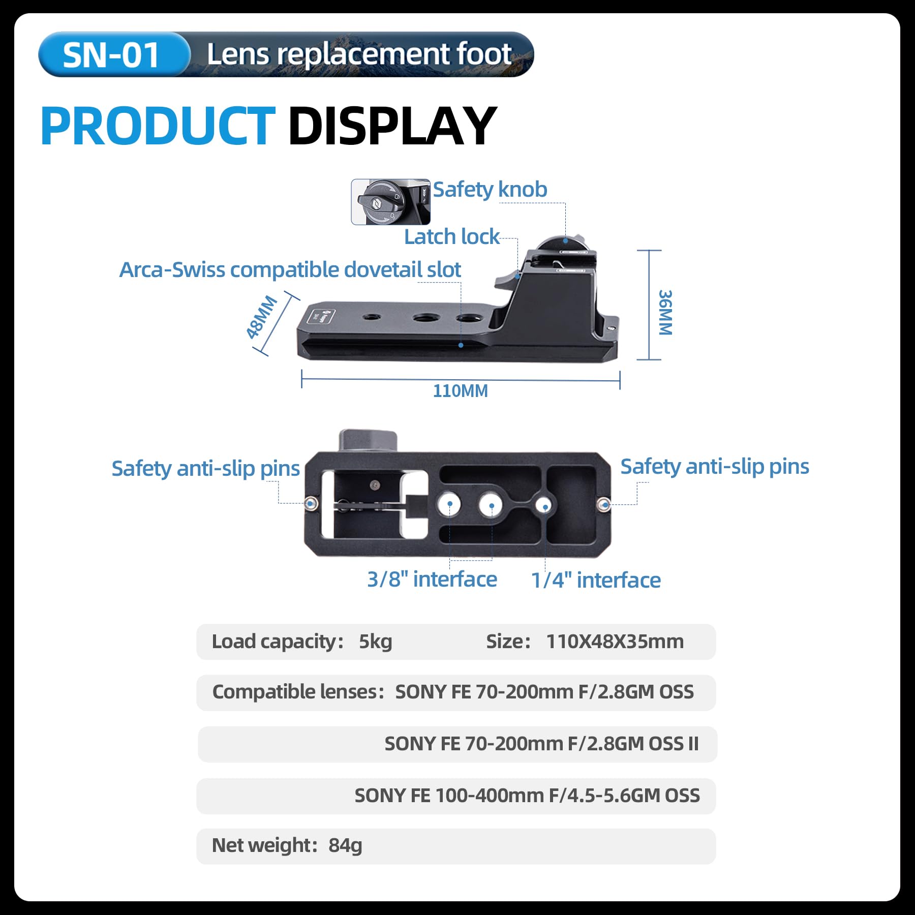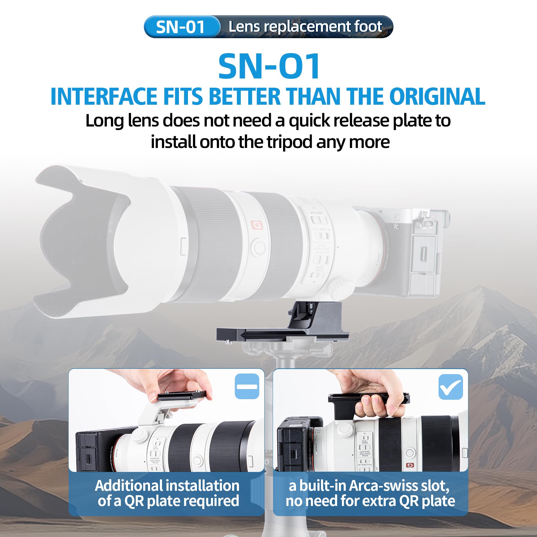 Fotopro カメラレンズ交換用フット、Sony FE 70-200、ダブテール付き三脚マウント、Arca-Swiss Fit カメラプレート SN-02 に対応