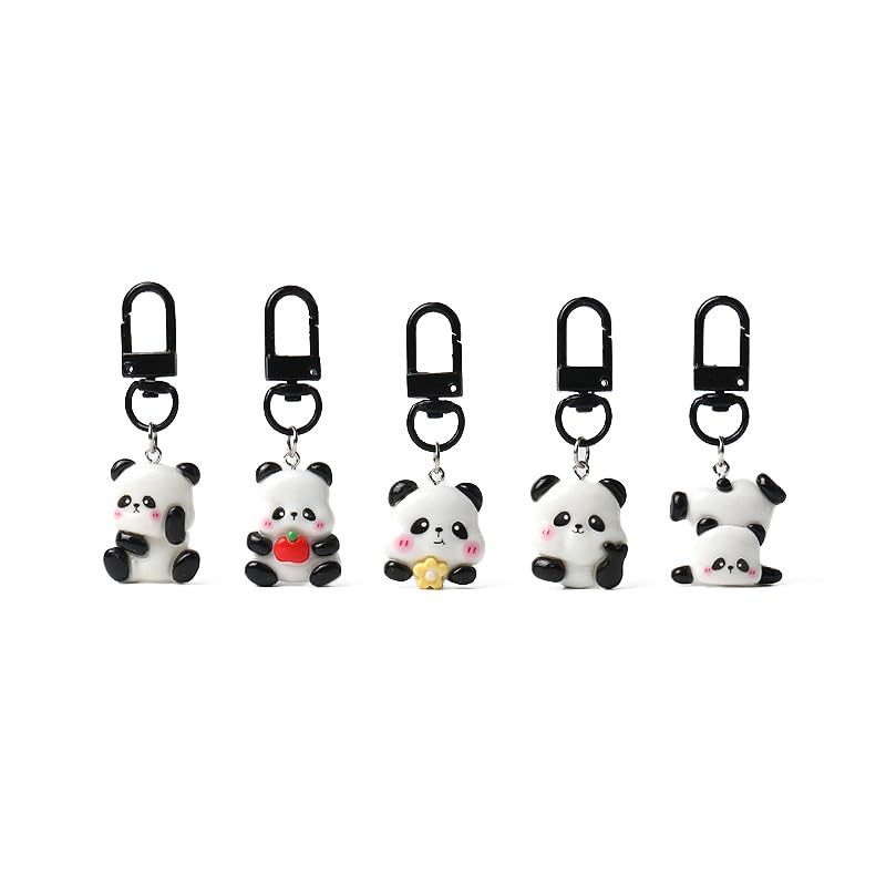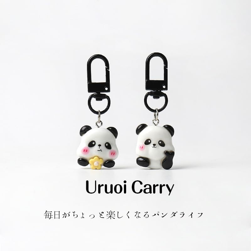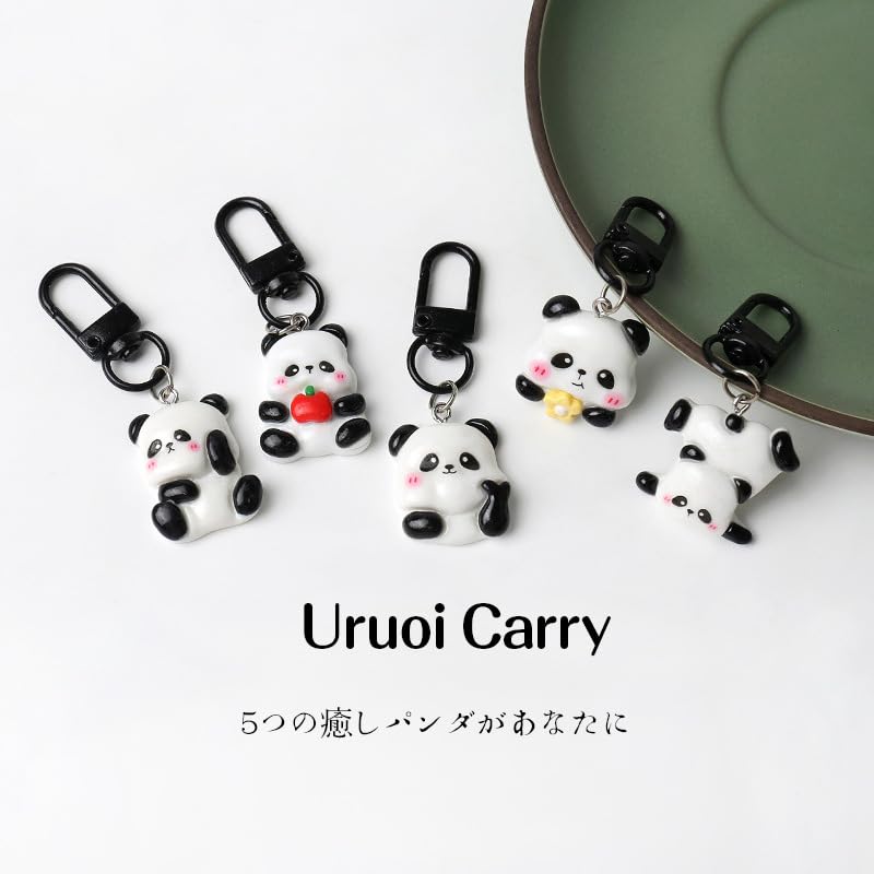 [Uruoi Carry] パンダキーホルダー 5個セット 手作り レジン 可愛い デザイン バッグチャーム キーリング ギフト プレゼント 女の子 癒し お揃い 韓国風