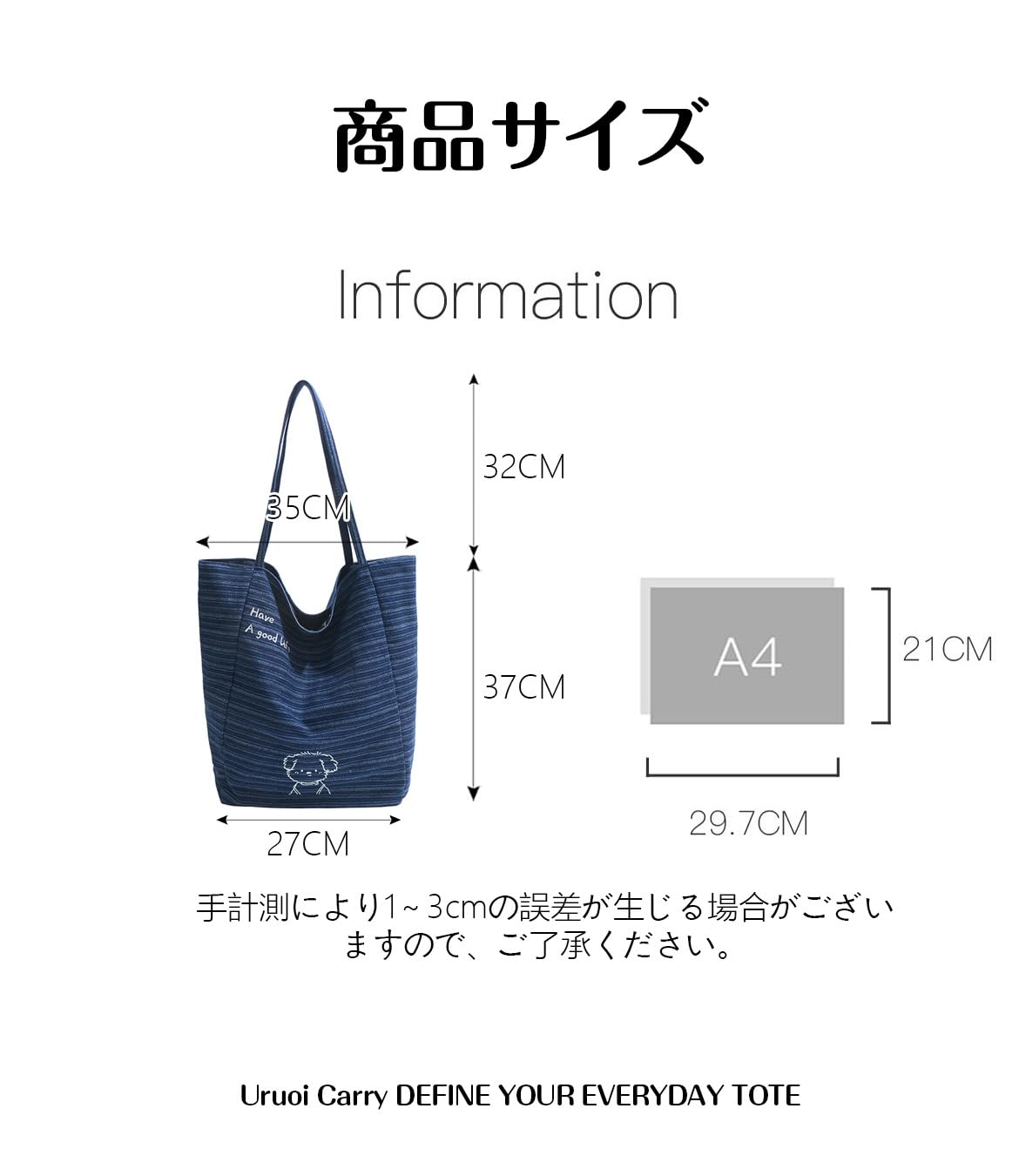 [Uruoi Carry] レディース キャンバストート A4対応 大容量 帆布 ショルダーバッグ 手提げバッグ エコバッグ おしゃれ マザーズバッグ カーキ “summer time” 刺繍 ファスナー付き