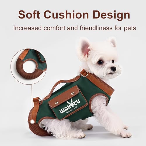 Wakytu 犬用リフトハーネス 犬用キャリア 犬 VES ハーネス 調節可能な犬用リード 小さな子犬のおやつバッグ付き ほとんどの車に適合 L