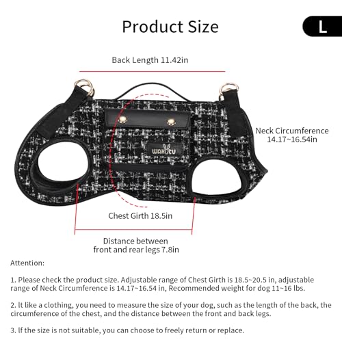 Wakytu 犬用 リフトハーネス キャリア VESハーネス 調整可能なリード付き 小型犬用 おやつポーチ付き ブラック Lサイズ