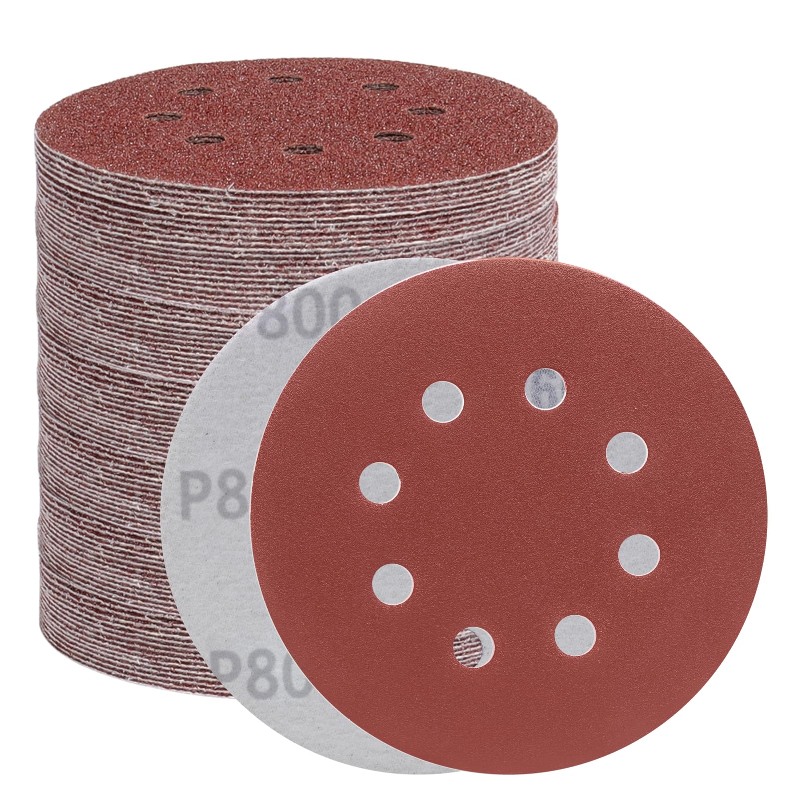 BODHTAT ディスクペーパー 125mm #800番 100枚入セット サンダー ペーパー マジック式 8穴 サンディングペーパー 丸型 サンディングディスク 電動サンダー用サンドペーパー 木工DIY作業に 車の研磨 ヘッドライトの研磨 金属磨き用
