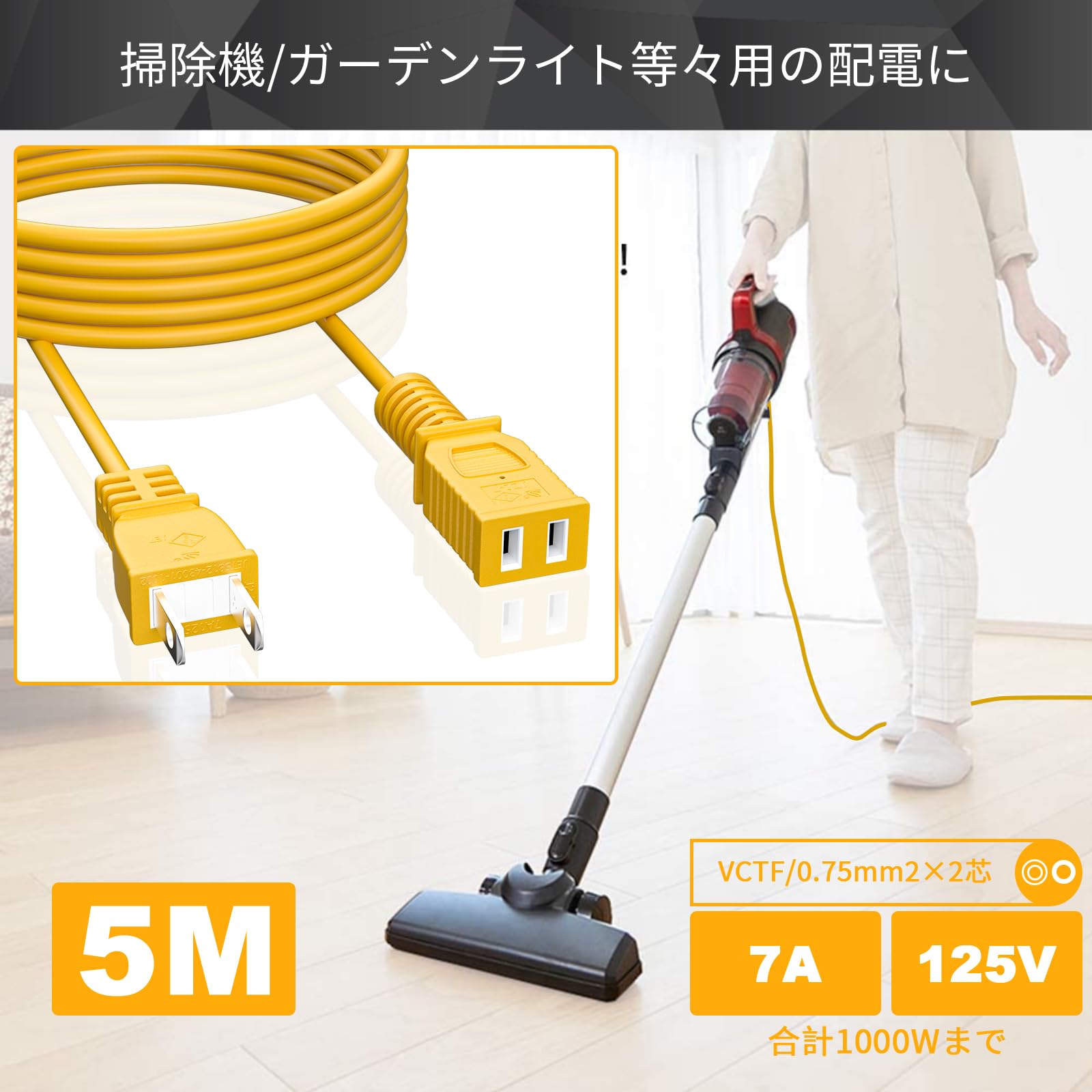 延長コード 5M HITRENDS ソフト延長コード 屋外 7A・5m 1ツ口 エロー ソフトタイプ 延長ケーブル 電源タップ 5m 耐寒 耐熱 電源 延長コード 10m 防雨型 PSE認定 丸型プラグ 電源コード 延長ケーブル 屋外用 電源増設 連結可 防雨型コンセント ジョイント アウトドア インドア PSE 2芯 トラッキング防止(5m)