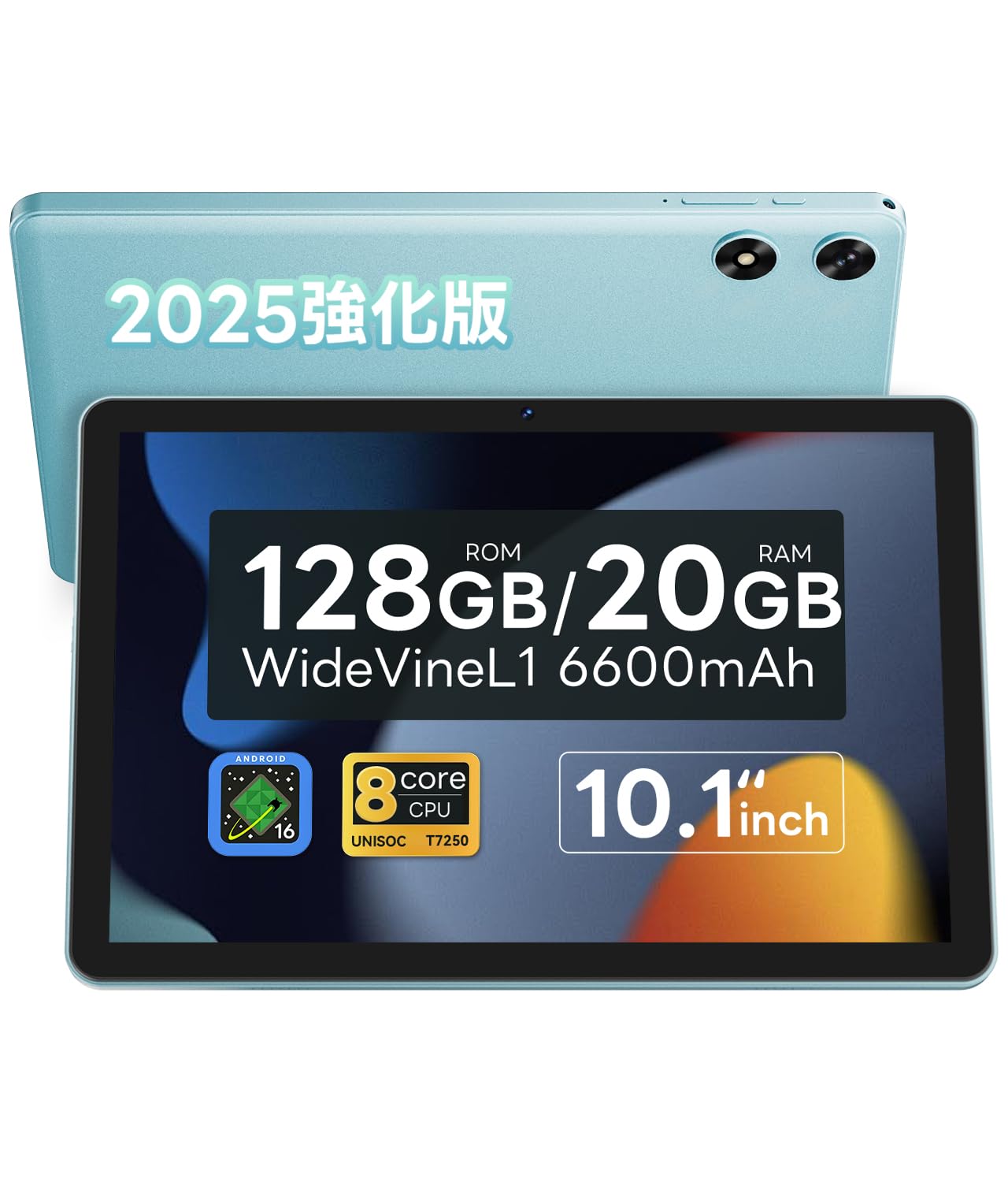 【2025強化版】android16 タブレット 10インチ Wi-Fiモデル 128GB/20GB/1TB拡張アンドロイド16 tablet 8コアCPU GPS搭載 widevineL1/Netflix/YouTube対応 2.4G&5GWifi/BT5.0 6600mAh 顔認識 画面分割 児童守護 動画/電子書/マンガ見る 保護フイルム貼り済み 一年保証付き