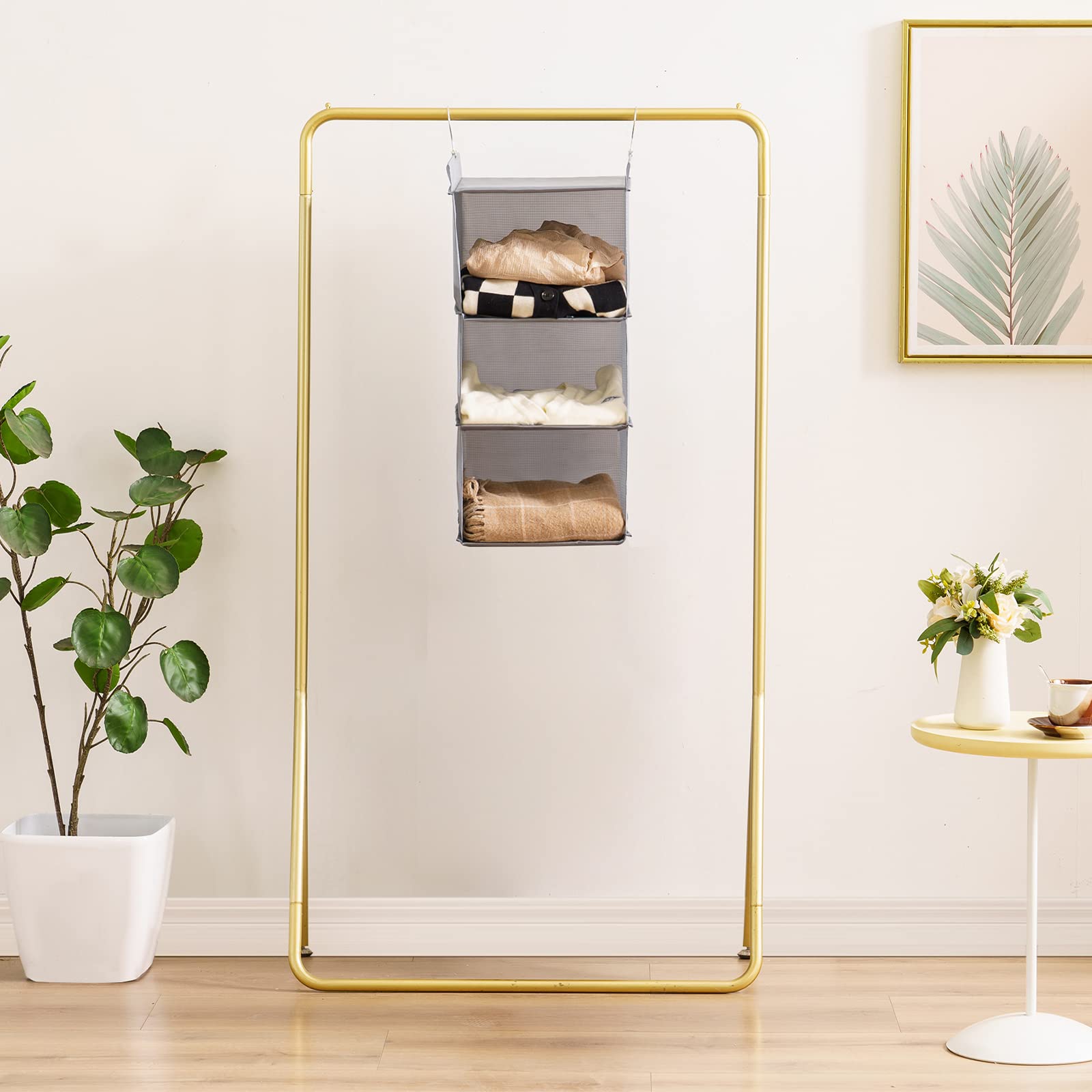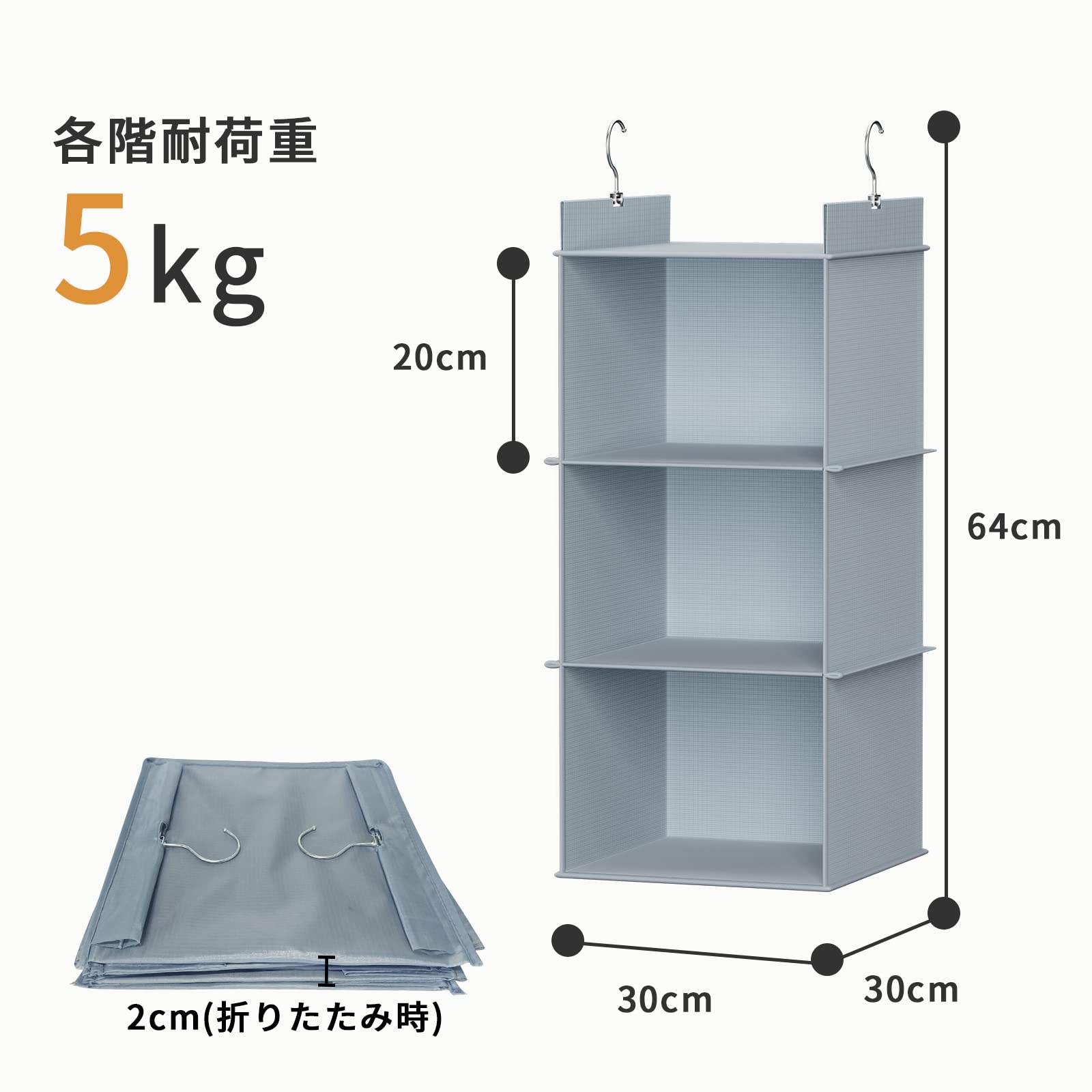 YOUDENOVA 吊り下げ収納 衣類ラック 収納 クローゼット 折りたたみ 旅行 便利グッズ 水洗い可能 防湿防カビ 洋服収納 衣類収納 帽子掛け (グレー、3段)