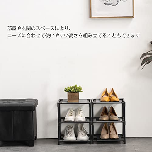 Easyhouse シューズラック 8段16~20足 靴収納 靴箱 金属製 下駄箱 シューズ棚 組み立て式省スペース 靴棚 多目的棚オーガナイザー 玄関 廊下 クローゼット アパート用 (黒い, シューズラック8段)