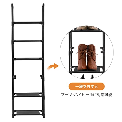 YOUDENOVA シューズラック6段 靴収納 分割可 シューズラックスリム 省スペース 組み立て式 10足 不織布 玄関に靴を効率収納 (ブラック、6段)
