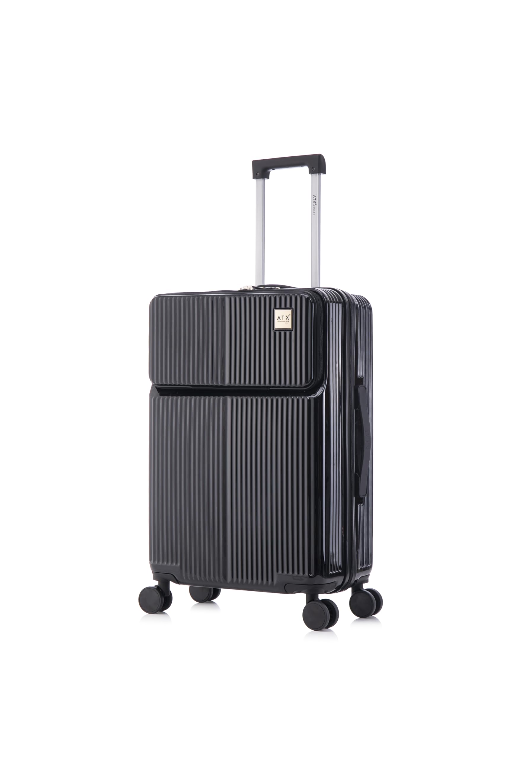 [ATX LUGGAGE] スーツケース フロントオープン 軽量 耐衝撃 ハードキャリーバッグ 静音ダブルキャスター TSAロック搭載 隠しフック付き ビジネス出張 海外 旅行 ファスナータイプ (ブラック、4~7泊/63L)