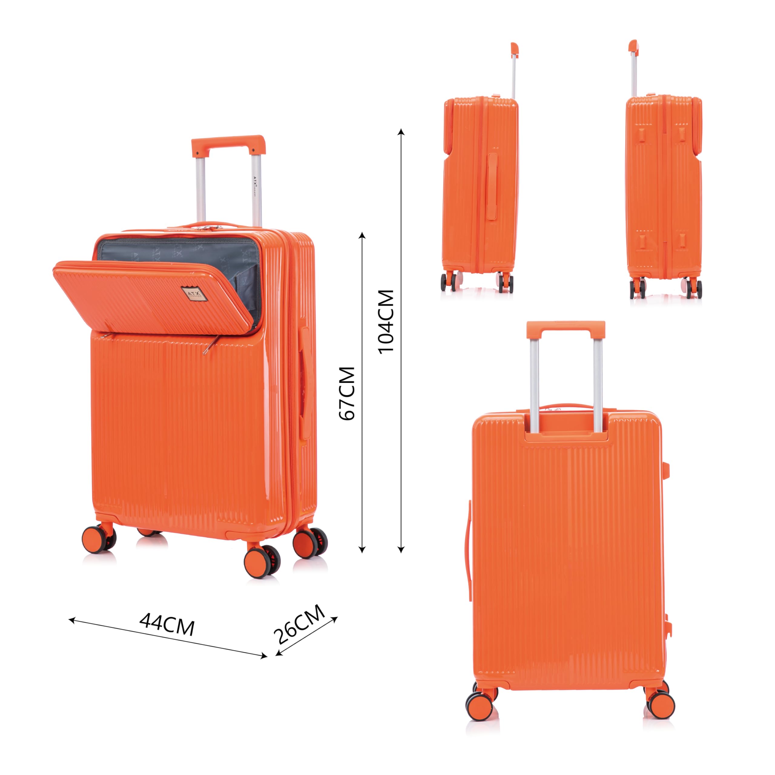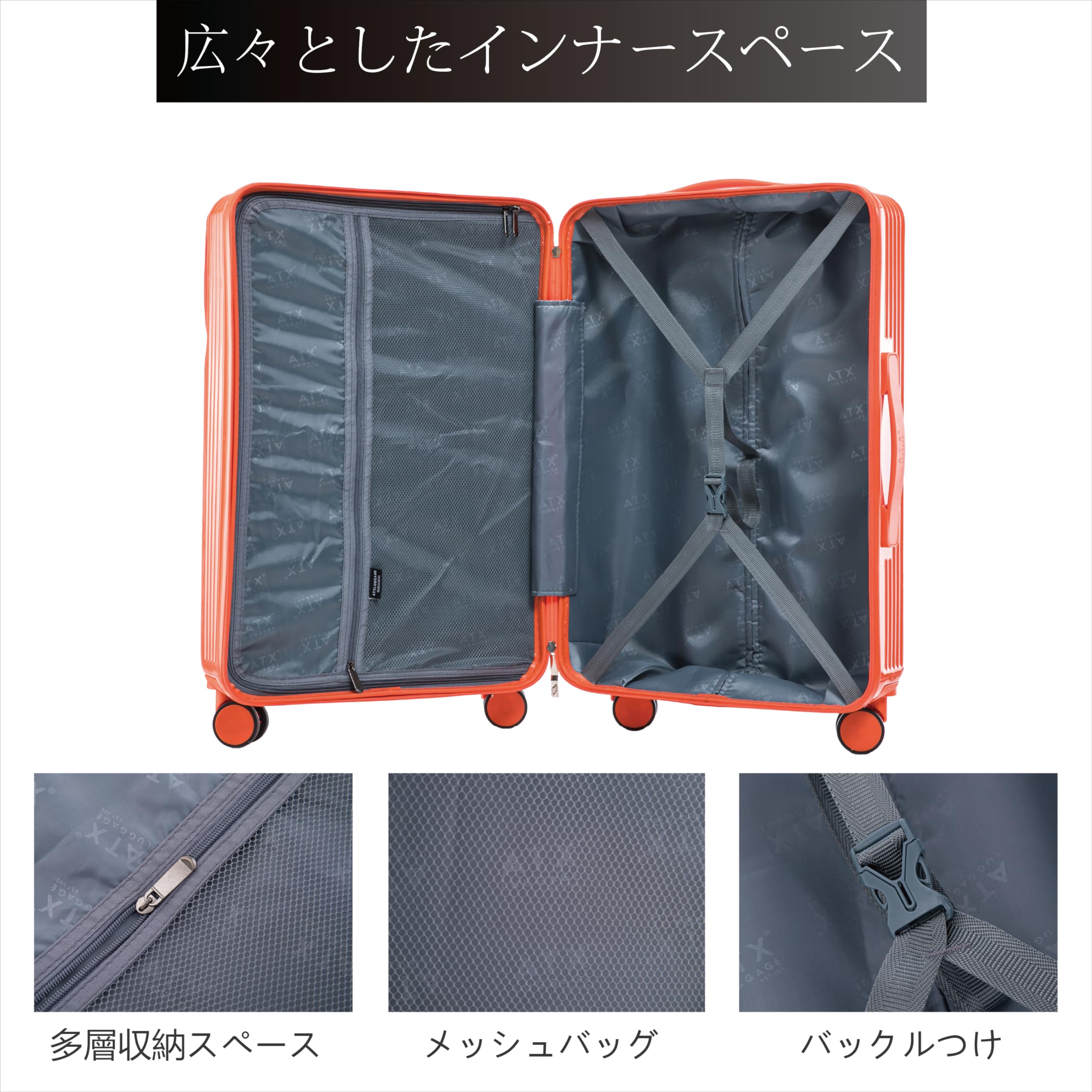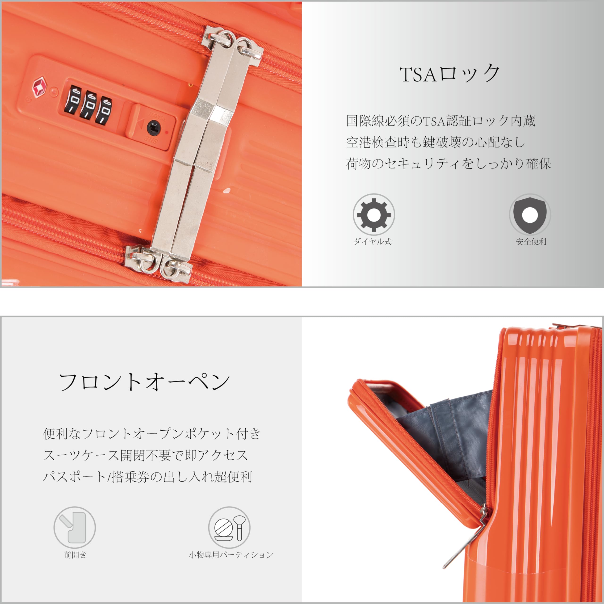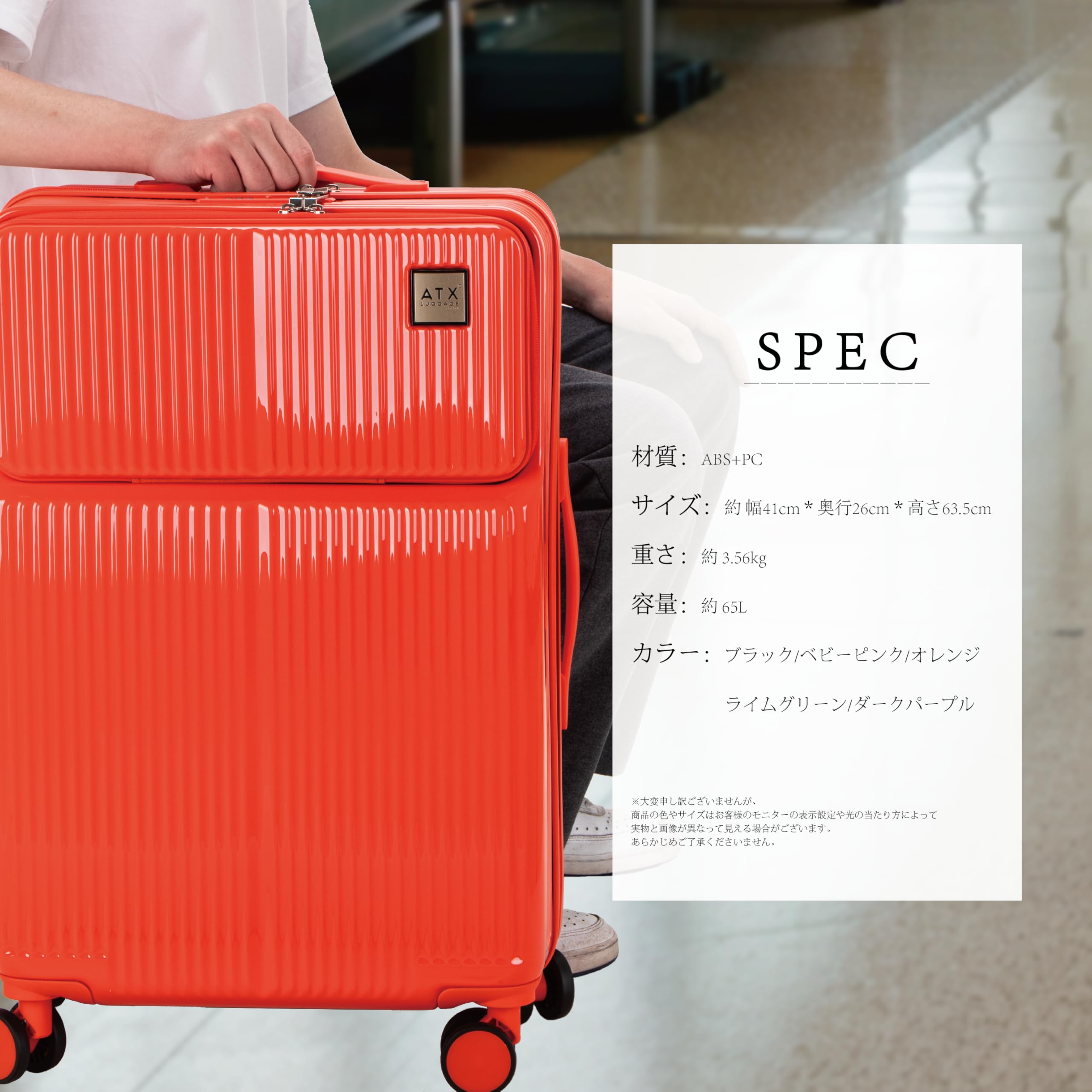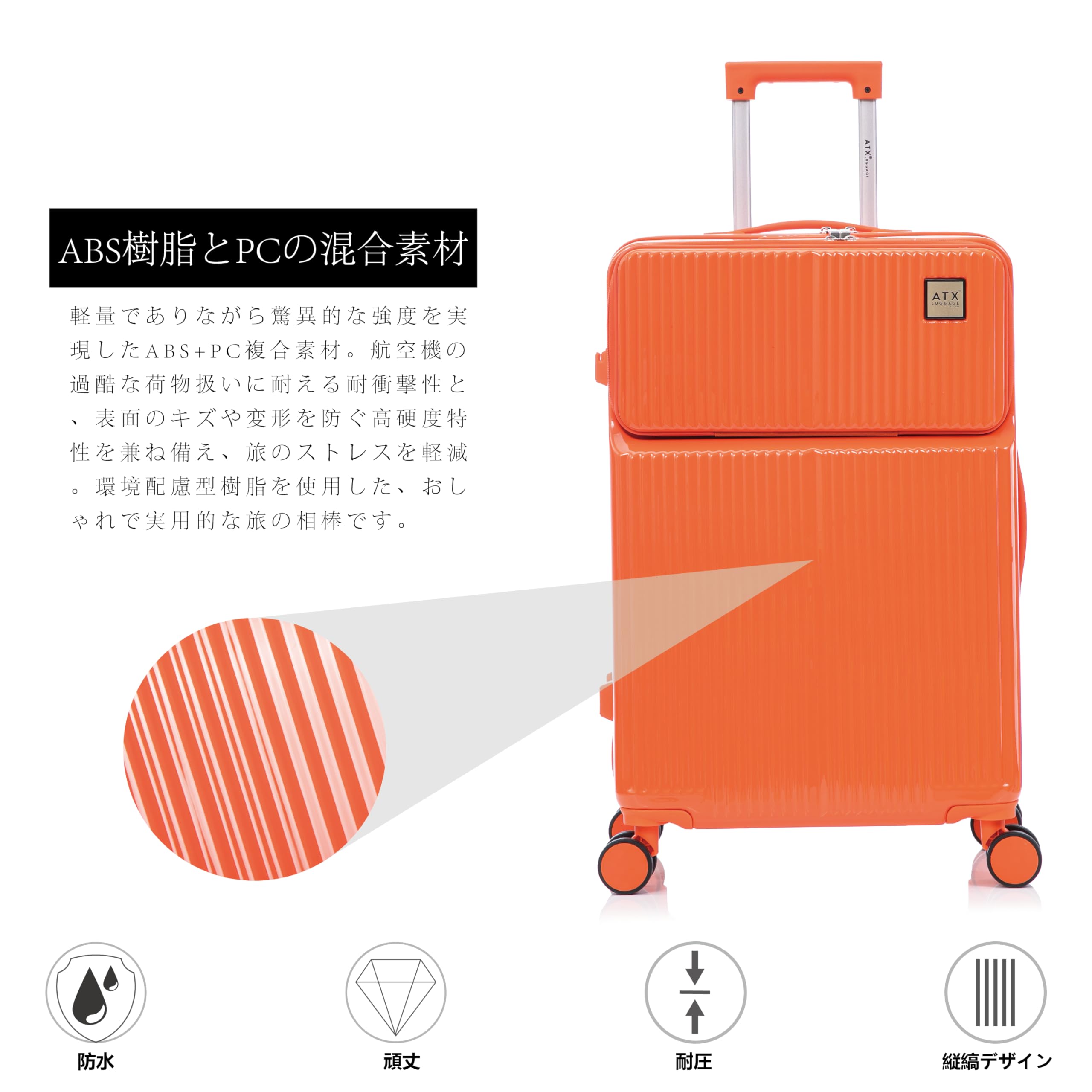 [ATX LUGGAGE] スーツケース フロントオープン 軽量 耐衝撃 ハードキャリーバッグ 静音ダブルキャスター TSAロック搭載 隠しフック付き ビジネス出張 海外 旅行 ファスナータイプ (オレンジ、4~7泊/63L)