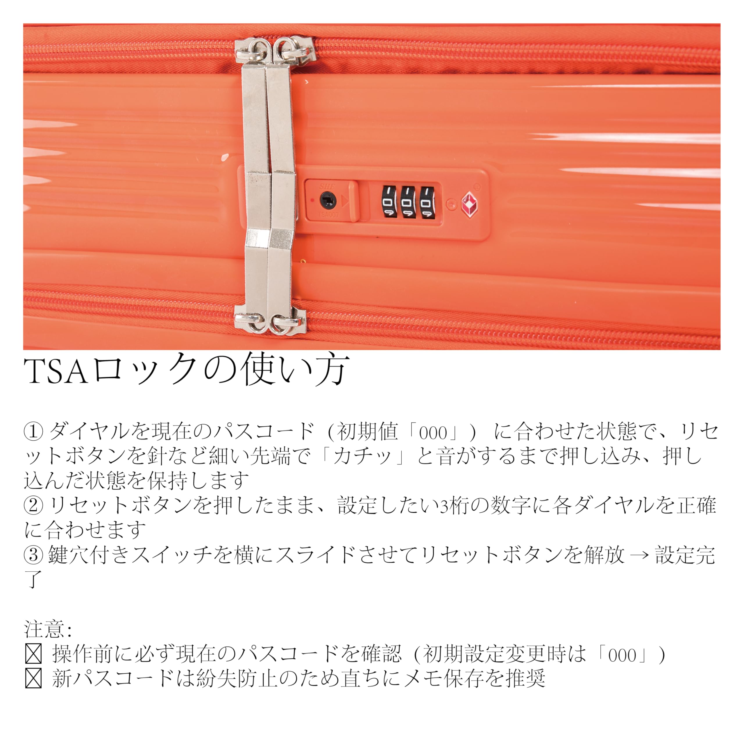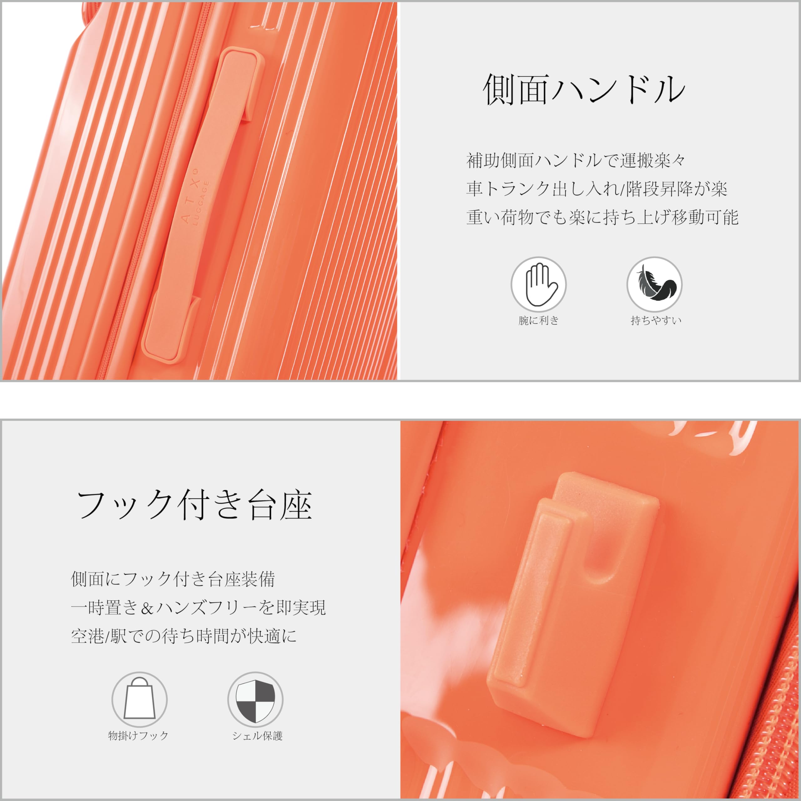 説明旅行のあらゆるシーンに対応する機能美。この24インチサイズのスーツケースは、国内外の旅行やビジネス出張に最適な機能性とスタイリッシュなデザインを兼ね備えた逸品です。航空会社の預け入れ規格に適合した大型サイズでありながら、軽量なABS+PC素材を採用することで、耐衝撃性と取り回しのしやすさを両立。最大の特長は、フロントオープンポケットを搭載している点です。空港の保安検査や機内で必要な書類・パスポート・タブレットなどを素早く取り出せるため、ビジネスユーザーや頻繁に移動する旅行者に特に好評です。 360度静かに回転するダブルキャスターと、3段階調整可能なアルミ製キャリーバーにより、空港の舗装路や街中の石畳など、あらゆる路面でのスムーズな移動を実現。重い荷物を入れても引くのに力はいらず、男女問わず快適にご利用いただけます。内部は圧縮バンド付きのメインコンパートメントとメッシュ仕切りポケットを採用し、スーツや衣類のしわ防止と小物の整理整頓に優れています。さらに隠しフックを装備し、荷物やカバンなどの追加アイテムを簡単に取り付けることが可能。 セキュリティ面では、米国国土安全保障省認証のTSAロックを標準装備。アメリカやグアムなどへの渡航時、空港職員が専用鍵で開けられるため、鍵の紛失リスクがなく、貴重品の安全性が確保されます。24インチの大容量設計により、4~7泊程度の長期旅行や留学にも最適。すべての面で現代の旅行者やビジネスパーソンのニーズに応える、信頼性の高いキャリーバッグです