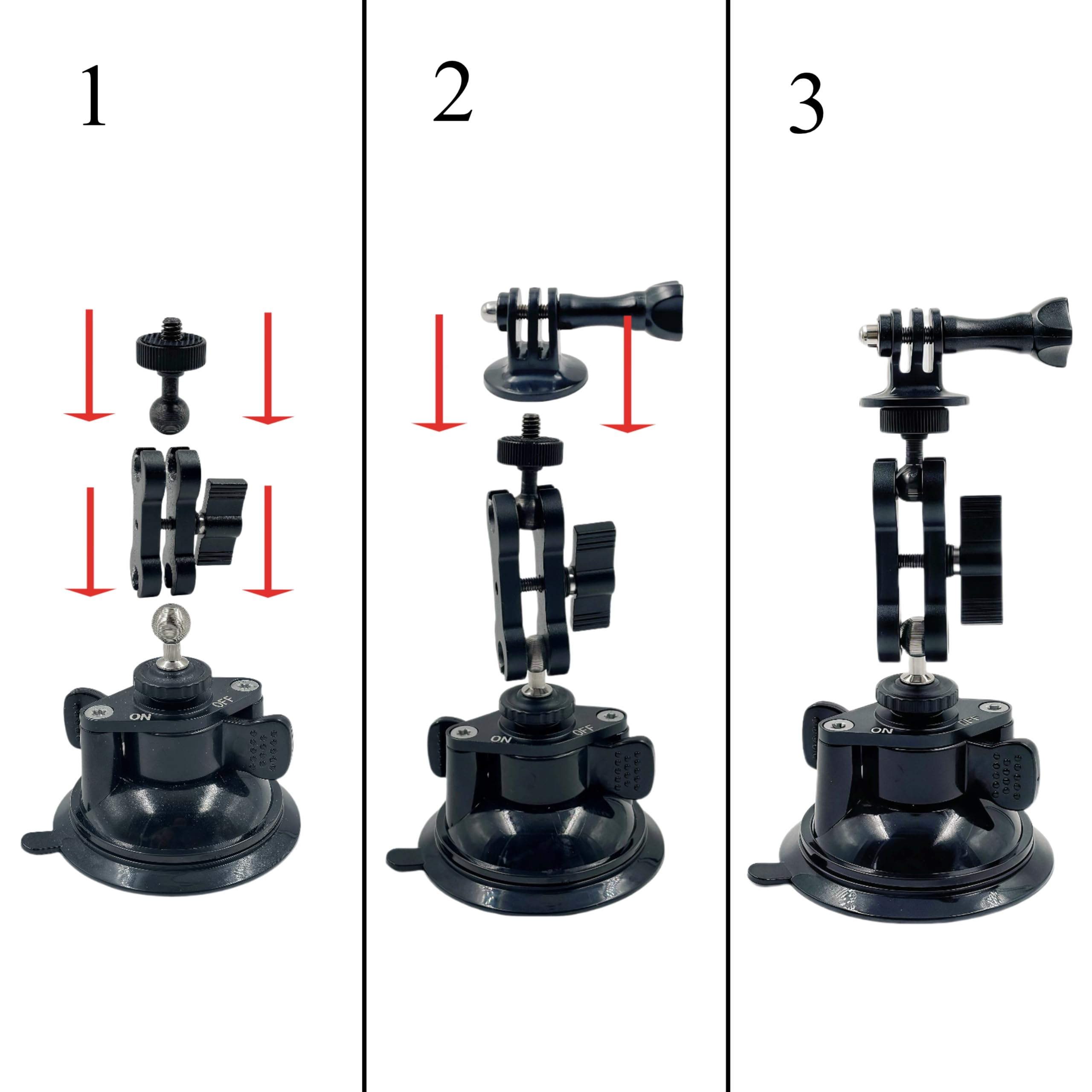 AFAITH アルミ合金製 車載マウント 吸盤マウント カメラマウント サクションカップマウント スマホホルダー付き フロントガラスホルダー アクションカメラ 360度回転 強力吸引 軽量 持ち運び楽々 スマホ/GoPro Hero 11/10/9/8/7/6/5/4/3/GoPro MAX/DJI Osmo Actionなどアクションカメラに対応