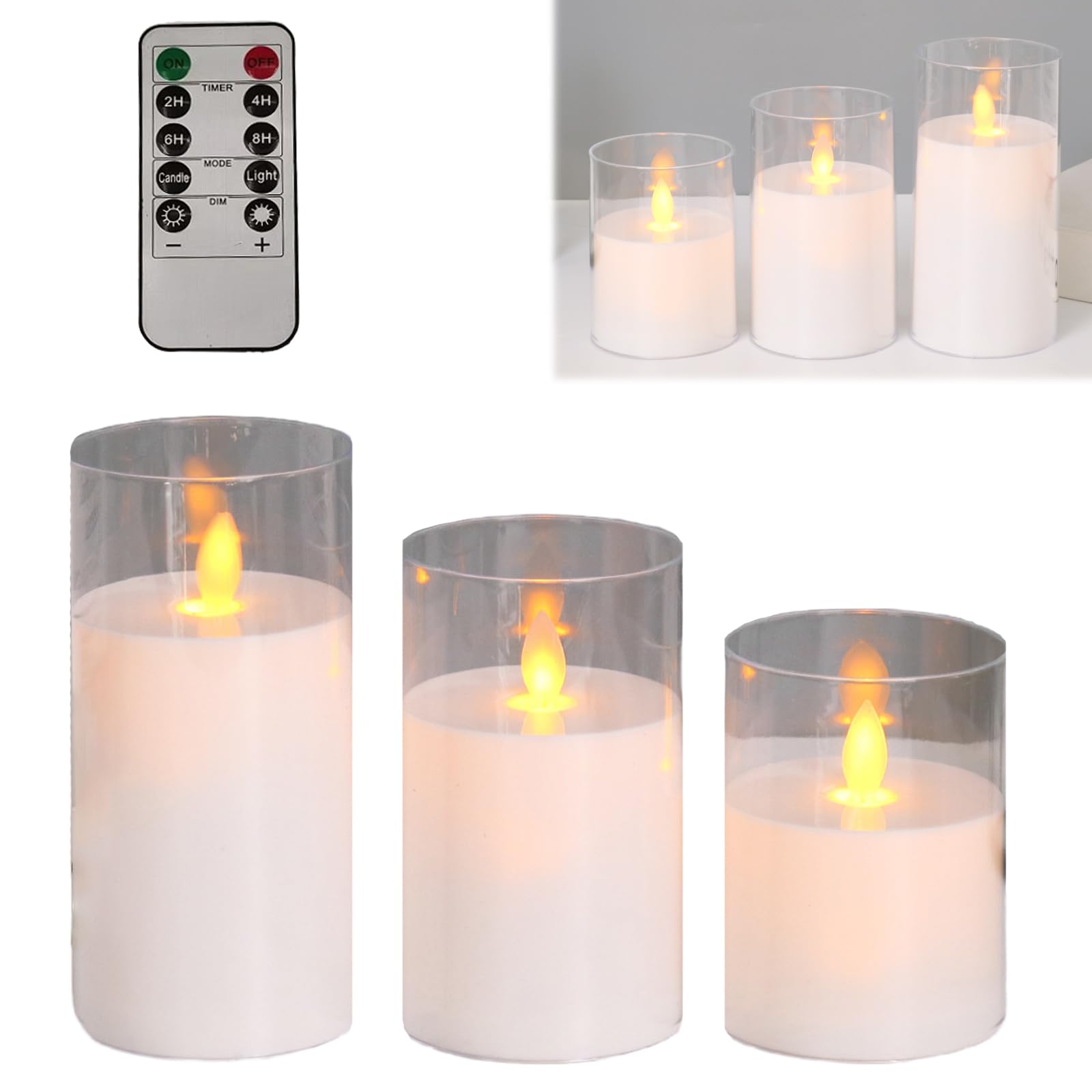 BTtime LEDキャンドルライト 3点セット LEDライト キャンドル 暖色光 ロウソク 専用リモコン付き 電池式 明るさ調整 火を使わない 本物の炎のようにゆらめく 省エネ 安全(ホワイト)
