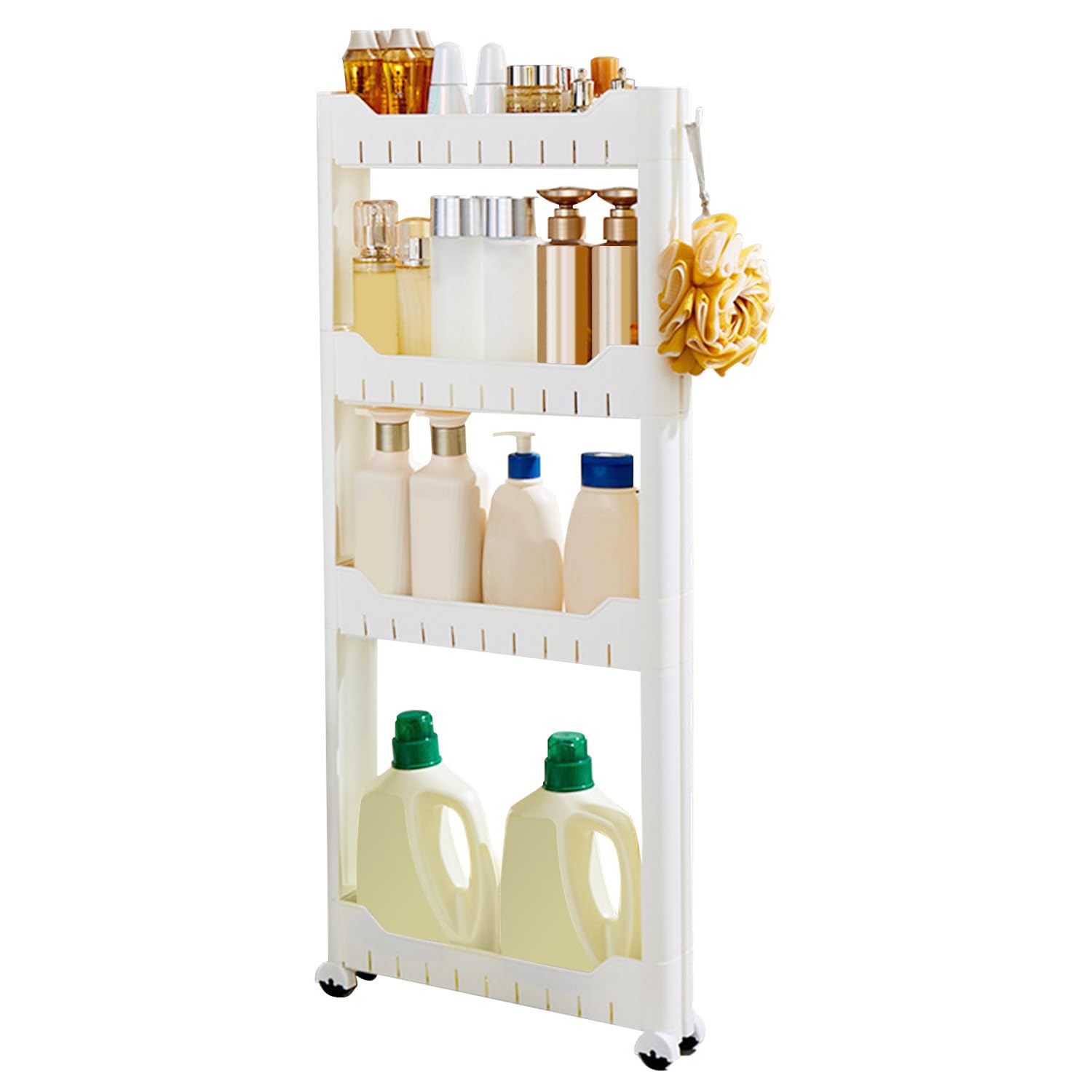 キッチンワゴン 天板付き 収納カート キッチンカート 四段ワゴン キッチンラック スリムワゴン 4段 隙間収納 省スペース 移動式 取っ手付き バスルーム 洗濯室 狭い場所用