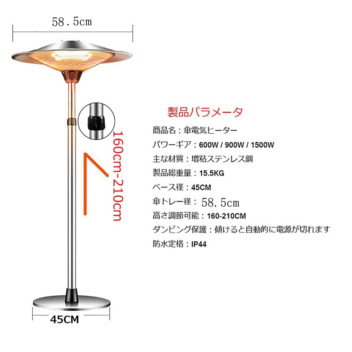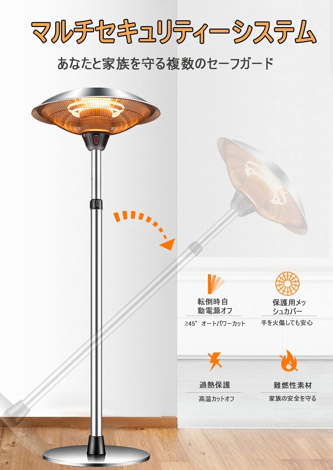 ハロゲンヒーター 屋外 ヒーター 電気ストーブ パティオヒーター 自立型 PSE認証済み 1500W 屋外電気ヒーター IP65防水 家庭用 省エネ高速暖房縦型ヒーター テラスヒーター 屋内/屋外用 暖房器具 過熱保護 高速暖房 三脚スタンド付き (SF-104)