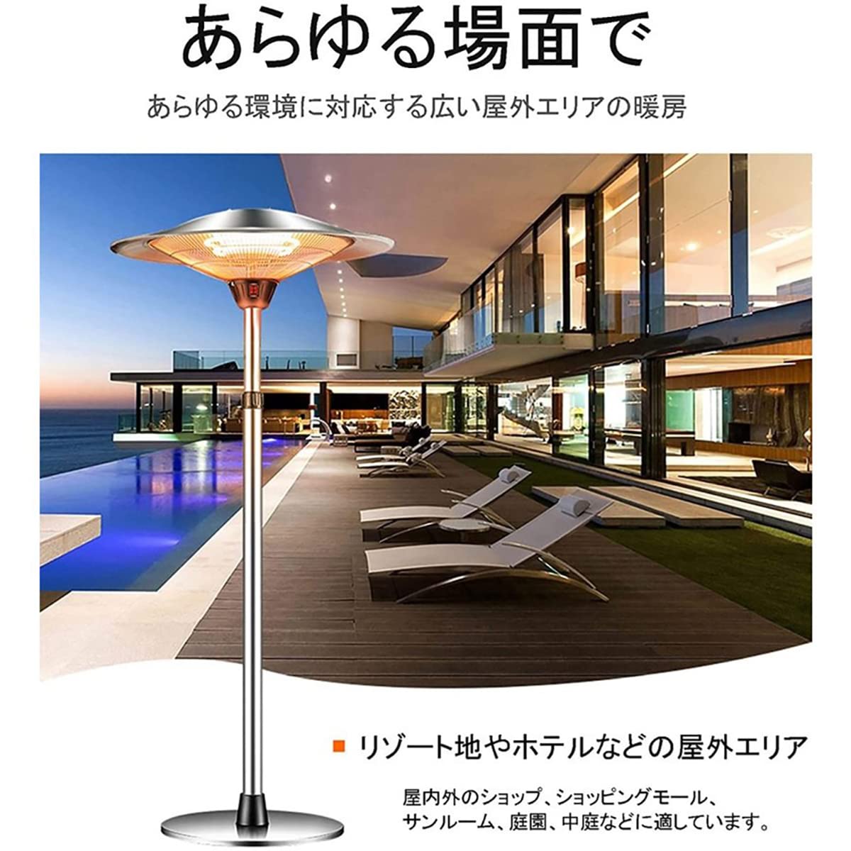 屋外ヒーター ハロゲンヒーター 100V 赤外線 パティオヒーター 瞬間加熱 PSE認証済み 自立型 3段階温度調整可能 転倒防止 360°全方位暖房 1500W 屋外屋内 テントガレージ 温室 学校 商用ポータブル (銀色)