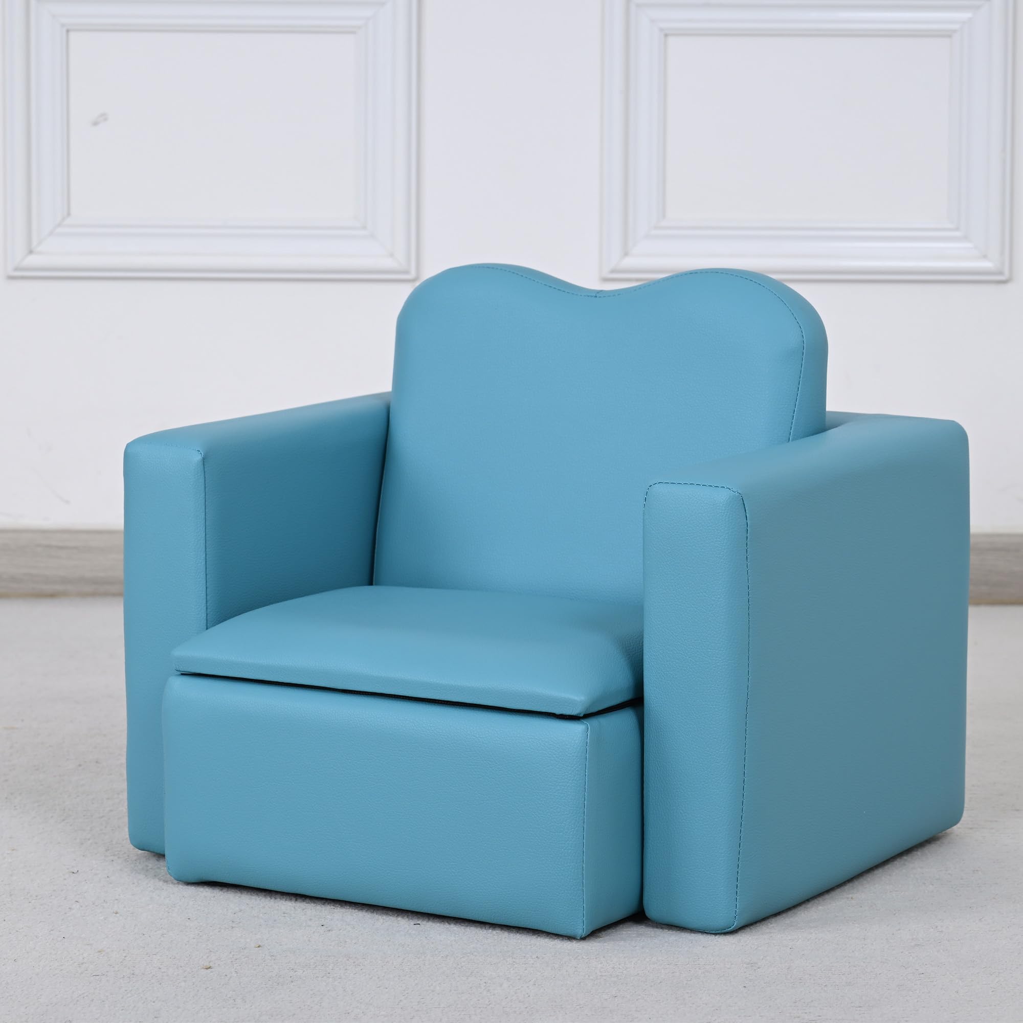 IKIFLY キッズ ソファ 子供用ソファーテーブル セット選べるカラー 肘掛けがテーブルになるソファ 組立不要 多機能 一人掛け 子ども用 チェア キッズルーム 子供部屋 リビング (ブルー)