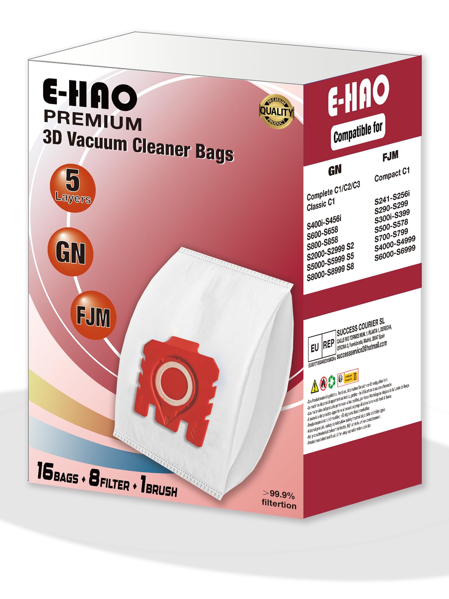 E-HAO 3D改良掃除機バッグ16個パック Miele掃除機FJMおよびGNシリーズ用交換部品。モデル:Complete C1/C2/C3, Compact C1/C2, Classic C1, S8, S6, S5, S4, S2
