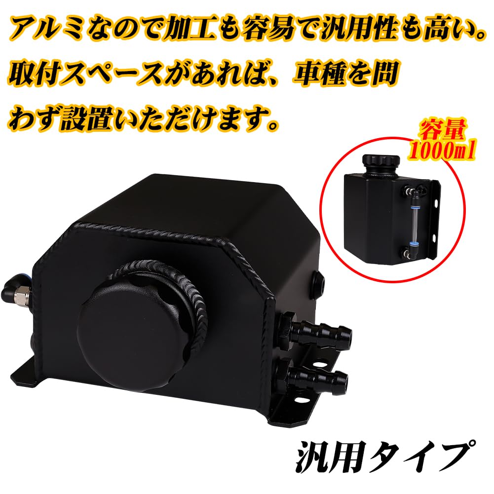 アルミ製 リザーバー タンク クーラント リザーブタンク オーバーフロー タンク オイルキャッチ ラジエータ 拡張合金タンク (ブラック)