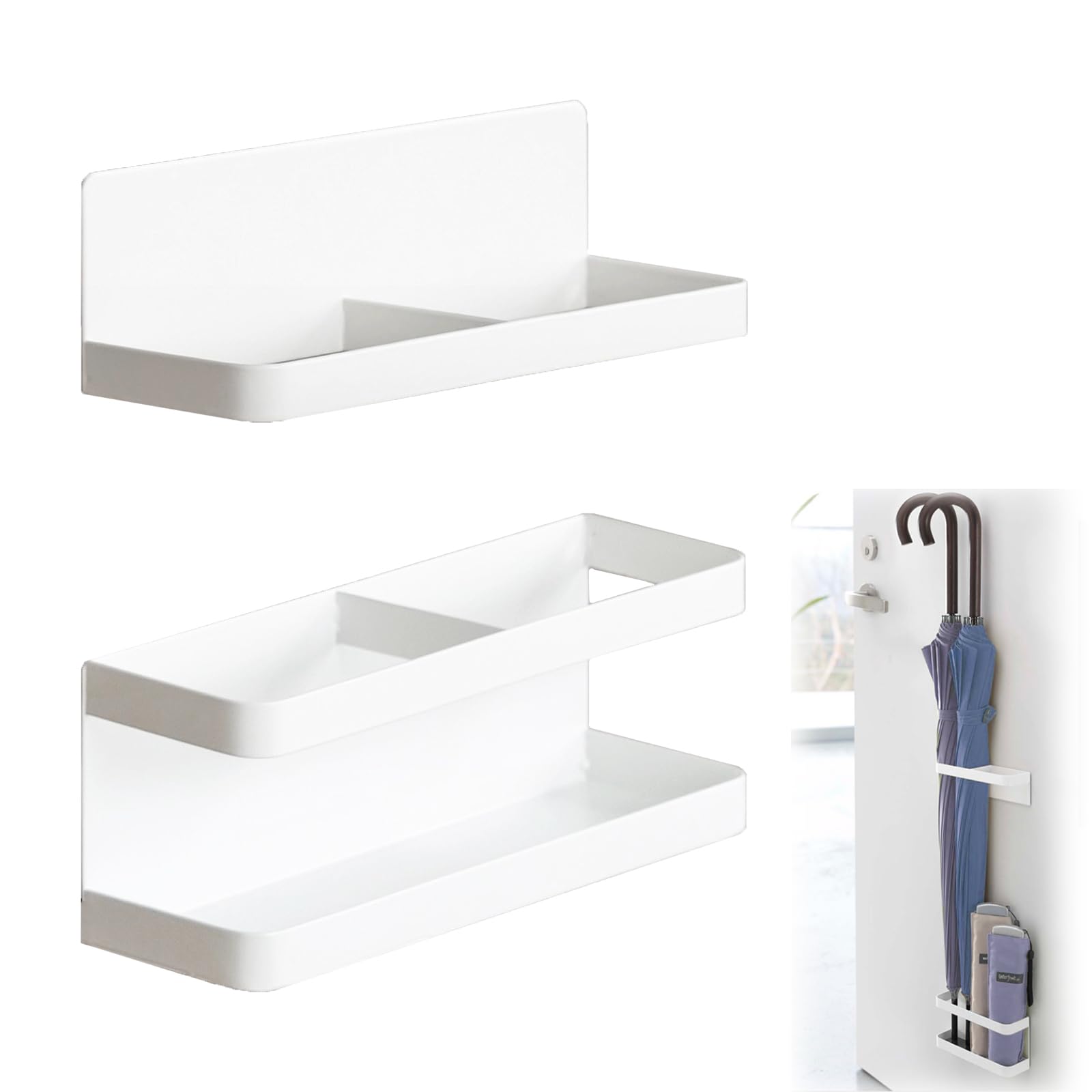 MLOQI アンブレラホルダー マグネット収納 マグネットトレー トレー付き 玄関収納 傘立て 傘立マグネット 傘収納 傘スタンド 傘ホルダー 玄関マグネット 鍵置き玄関 フック付き 約W20XD7XH9.5cm ホワイト ブラック