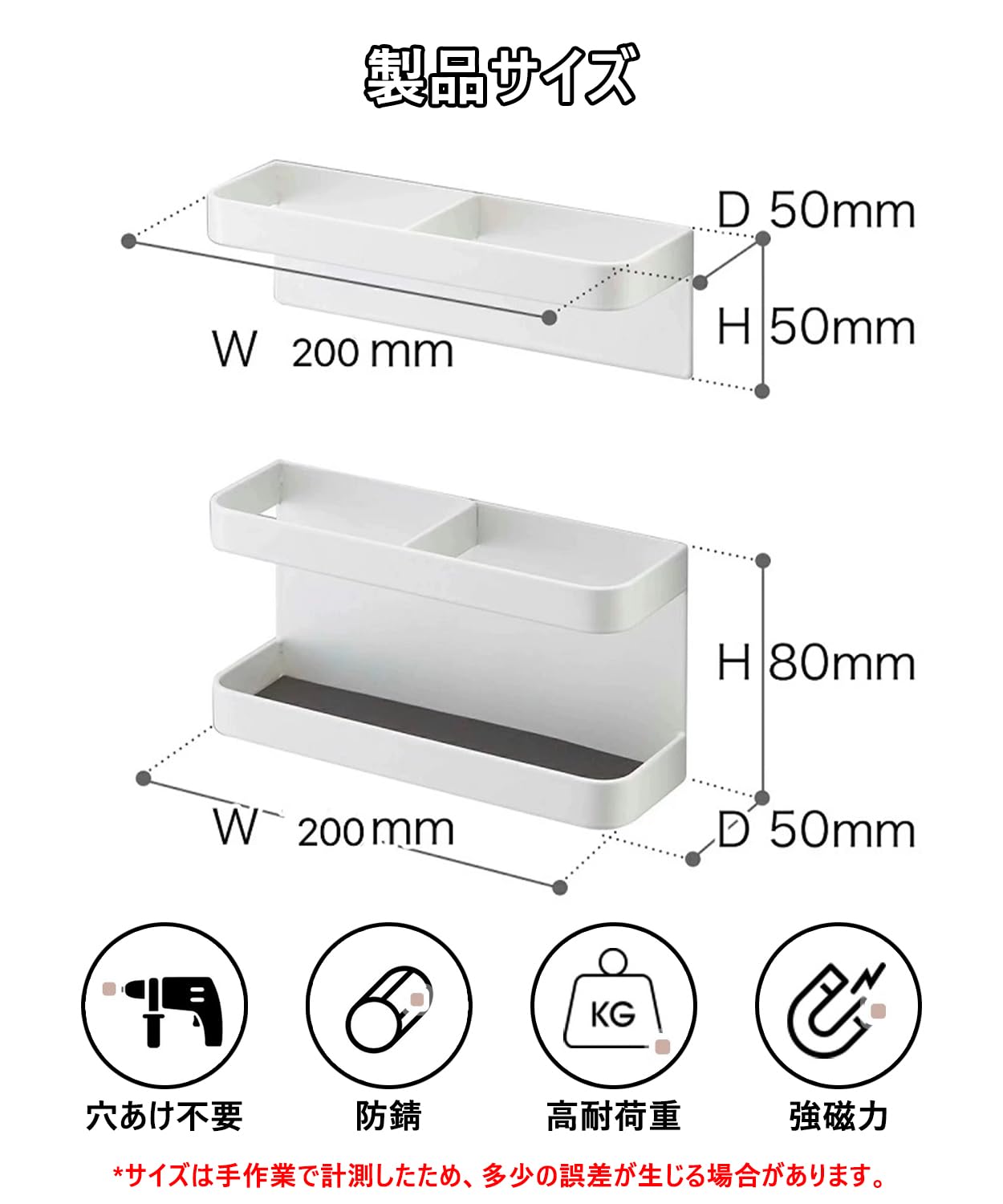 【磁気ベース】ネオジム磁石+厚肉炭素鋼採用。穴あけ不要で即貼り即使用。冷蔵庫/鉄扉などの金属面にしっかり吸着。