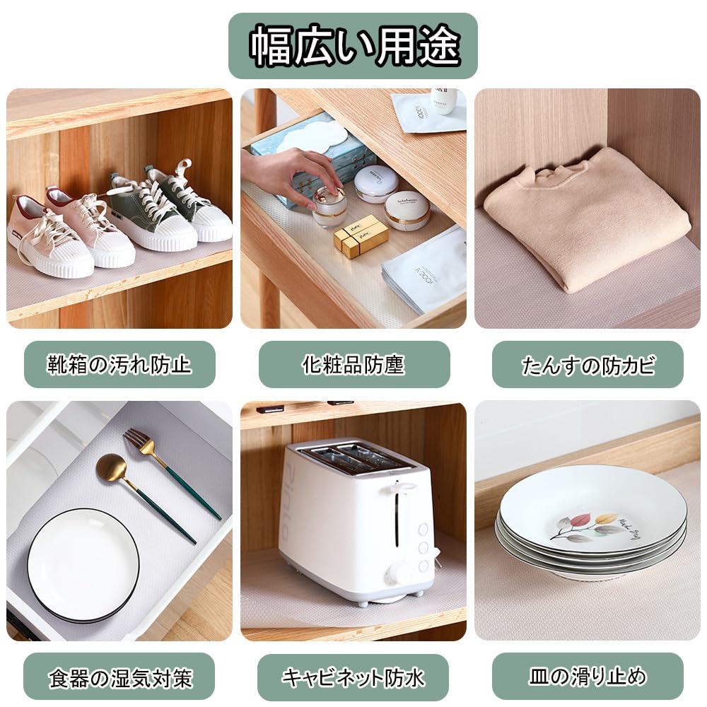 食器棚シート 3巻45*150cm しょっきだな シート 引き出しシート キッチンマット接着剤不要 裁断可能 EVA 耐熱、防湿、防油 食器棚/引き出し/キッチンに適用 家具保護(ライトグレー)