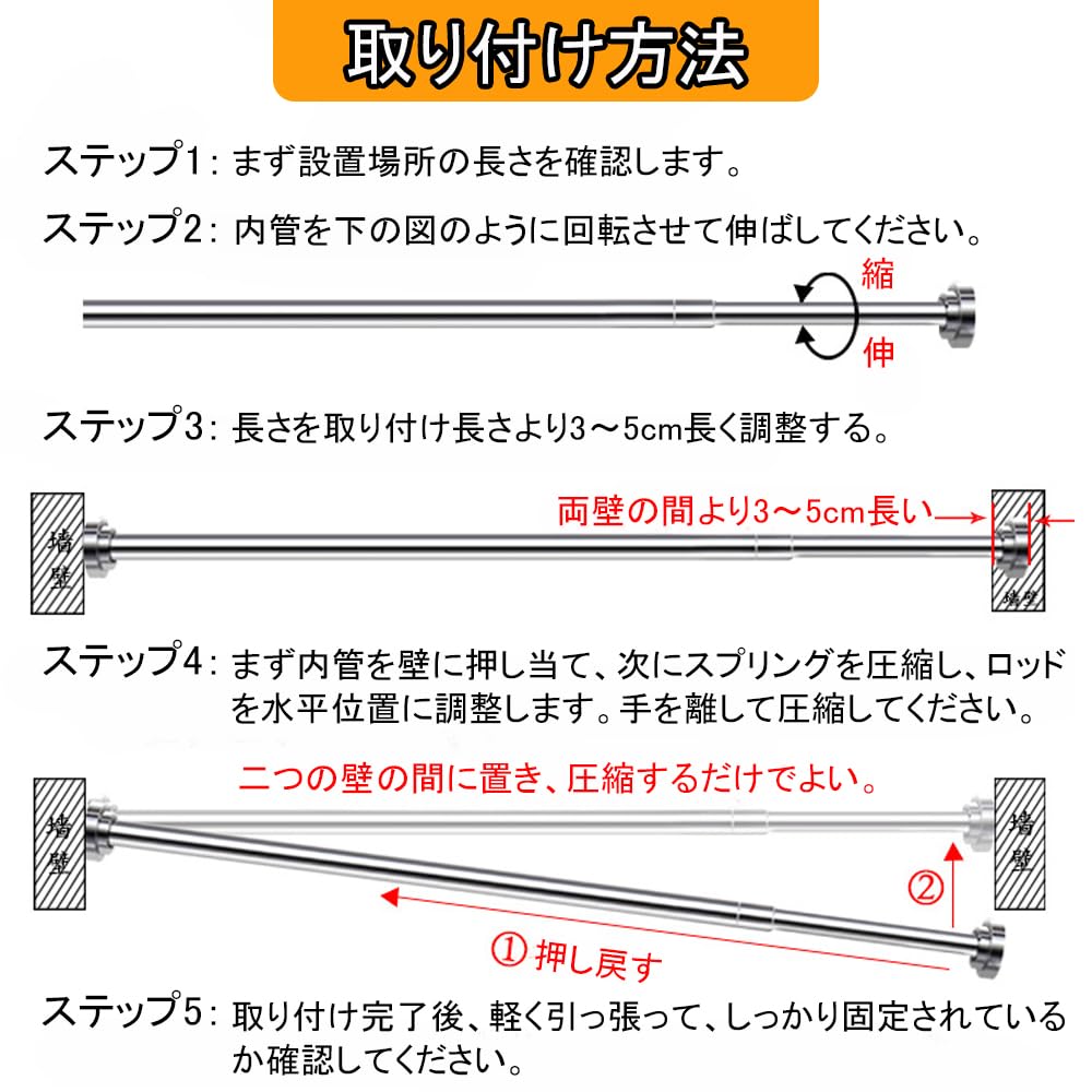 YOUDUOつっぱり棒 突っ張り棒 強力ツッパリ棒 幅50-260CM 浴室用ステンレス超強力伸縮棒 取付寸法 145~250cm 耐荷重60~15kg