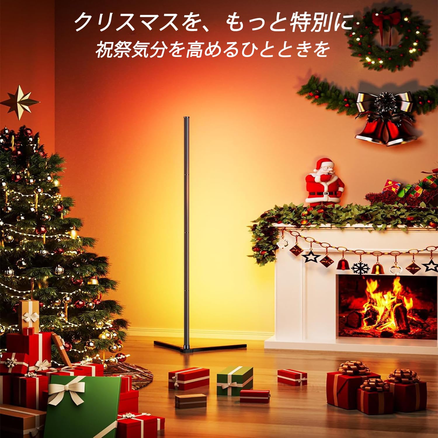 スマートRGB LEDコーナーフロアランプ - アプリ/リモコン対応、1600万色 & 68+シーンモード、音楽同期、タイマー設定 - リビング/寝室/ゲーミングルームに最適