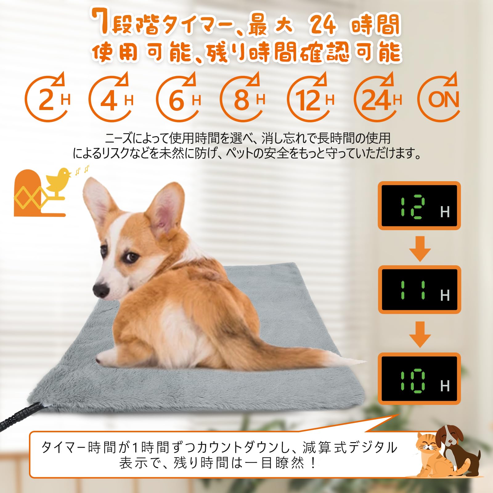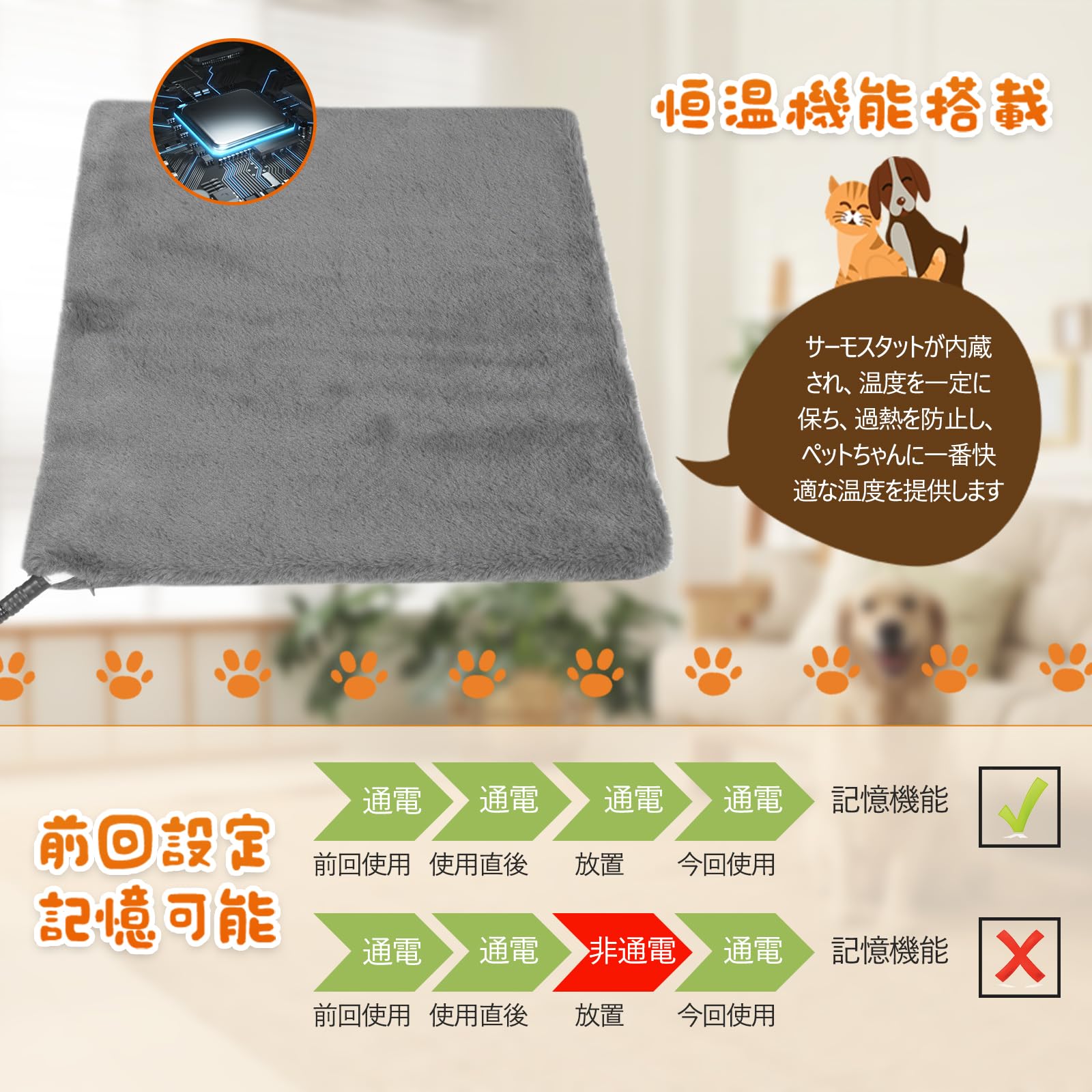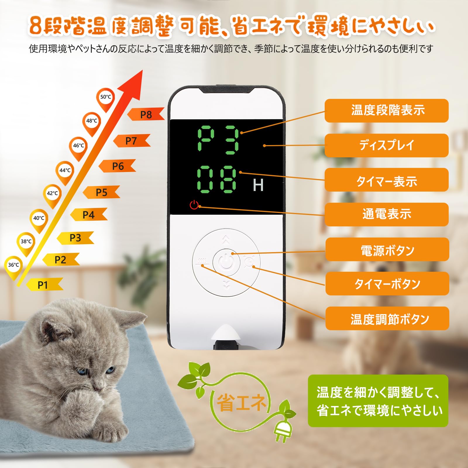 Sazuik ペット用ホットカーペット 8段階温度調整 7段階タイマー 犬 猫 ヒーター 45*70cm 猫用こたつ ペットヒーター 小動物 寒さ対策 記憶機能 ペット 電気マット PSE認証済み 恒温 噛み付き防止 洗える 扱説明書付き-グレー,L