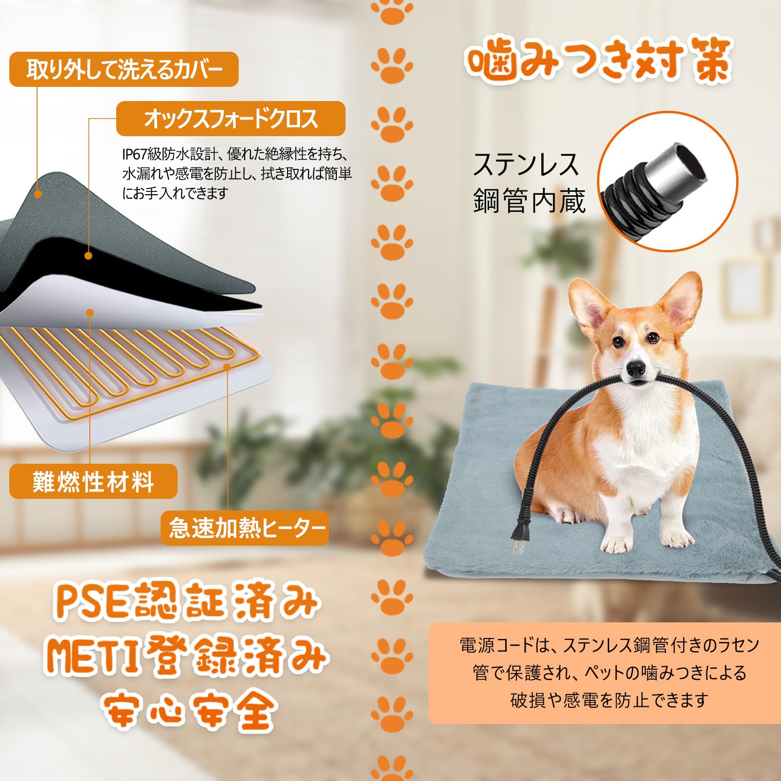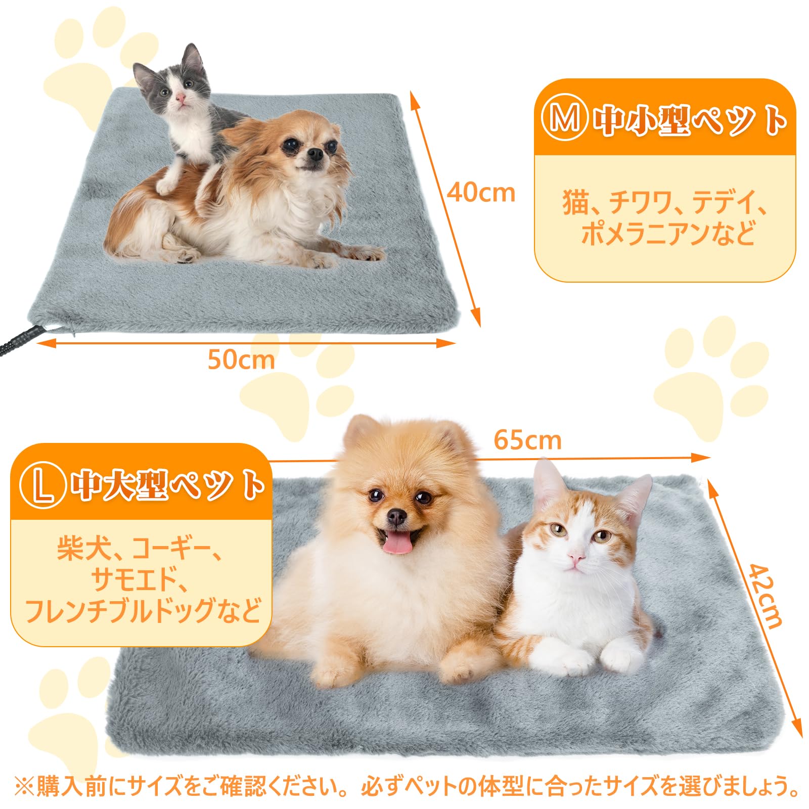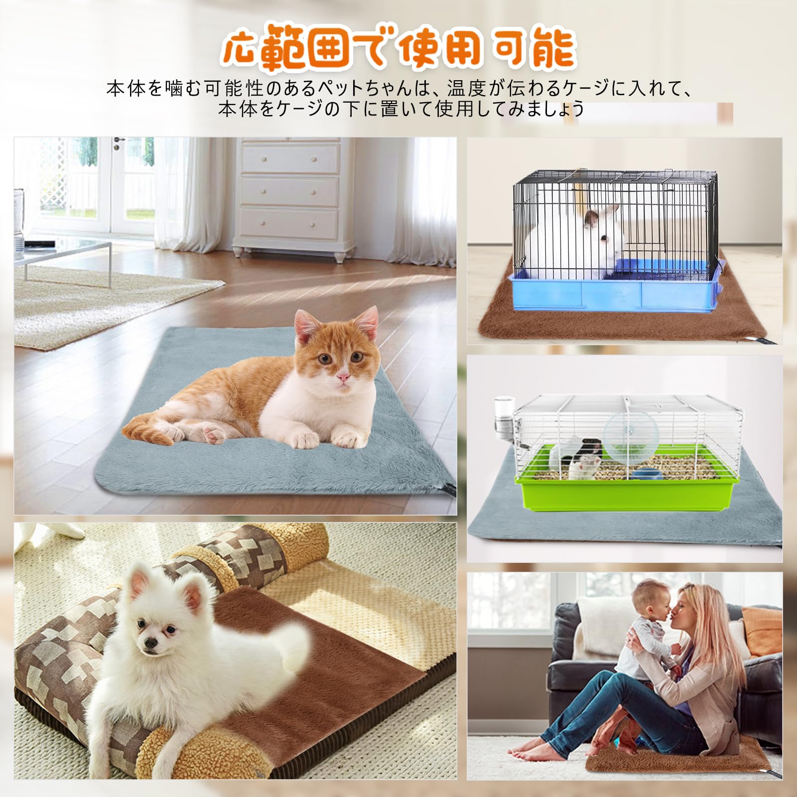 Sazuik ペット用ホットカーペット 8段階温度調整 7段階タイマー 犬 猫 ヒーター 45*70cm 猫用こたつ ペットヒーター 小動物 寒さ対策 記憶機能 ペット 電気マット PSE認証済み 恒温 噛み付き防止 洗える 扱説明書付き-グレー,L