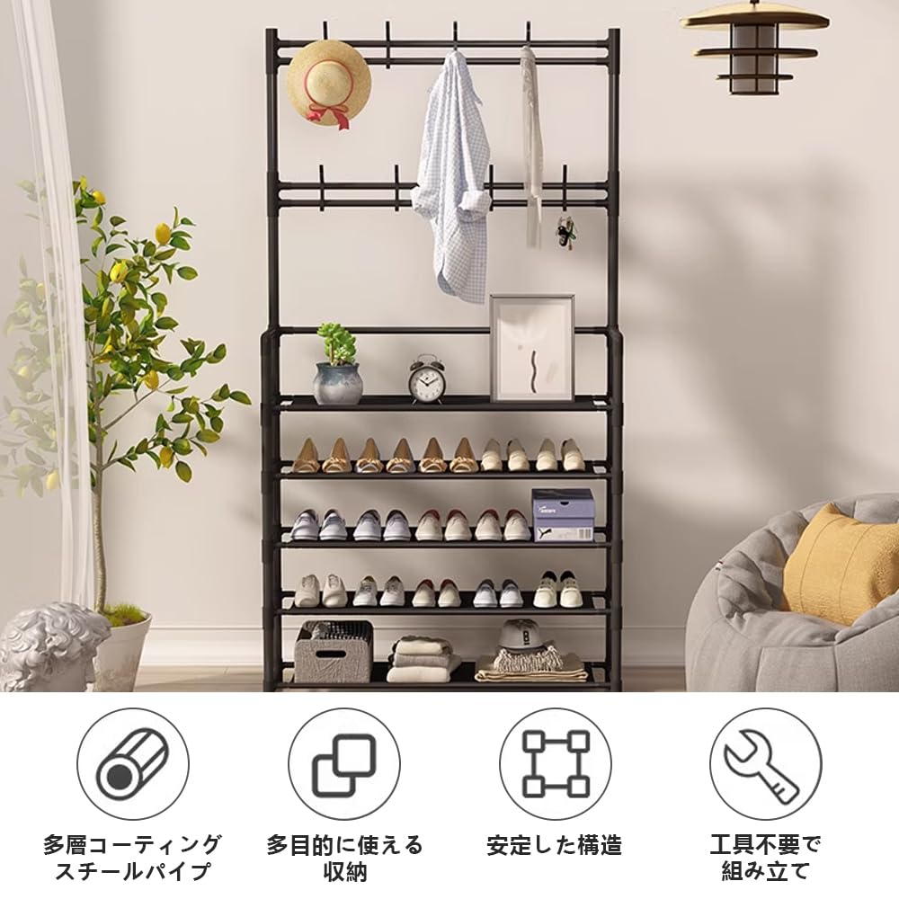 シューズラック スリム 9段階 靴収納 下駄箱 約幅24.2x奥29.2x高132.5cm タワー ポリプロピレン製 省スペース 組み立て簡単 狭い 玄関収納 軽量 大容量 多機能 防水 ブラック