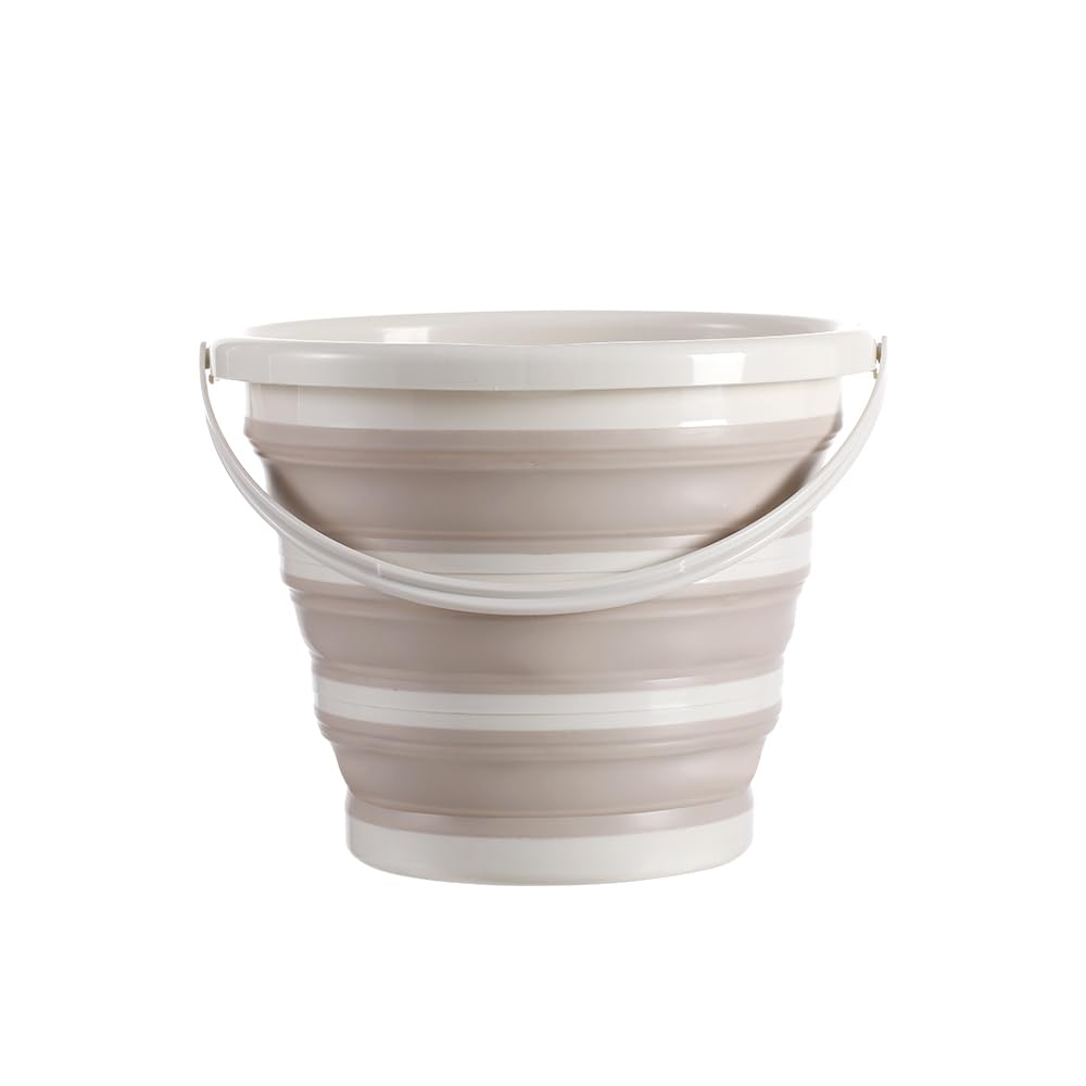 折りたたみバケツ 水バケツ 5L 10L 厚手多機能便利 足湯 四角おしゃれ キャンプ 洗濯 洗車 足湯 釣り (クリーム, 5L)