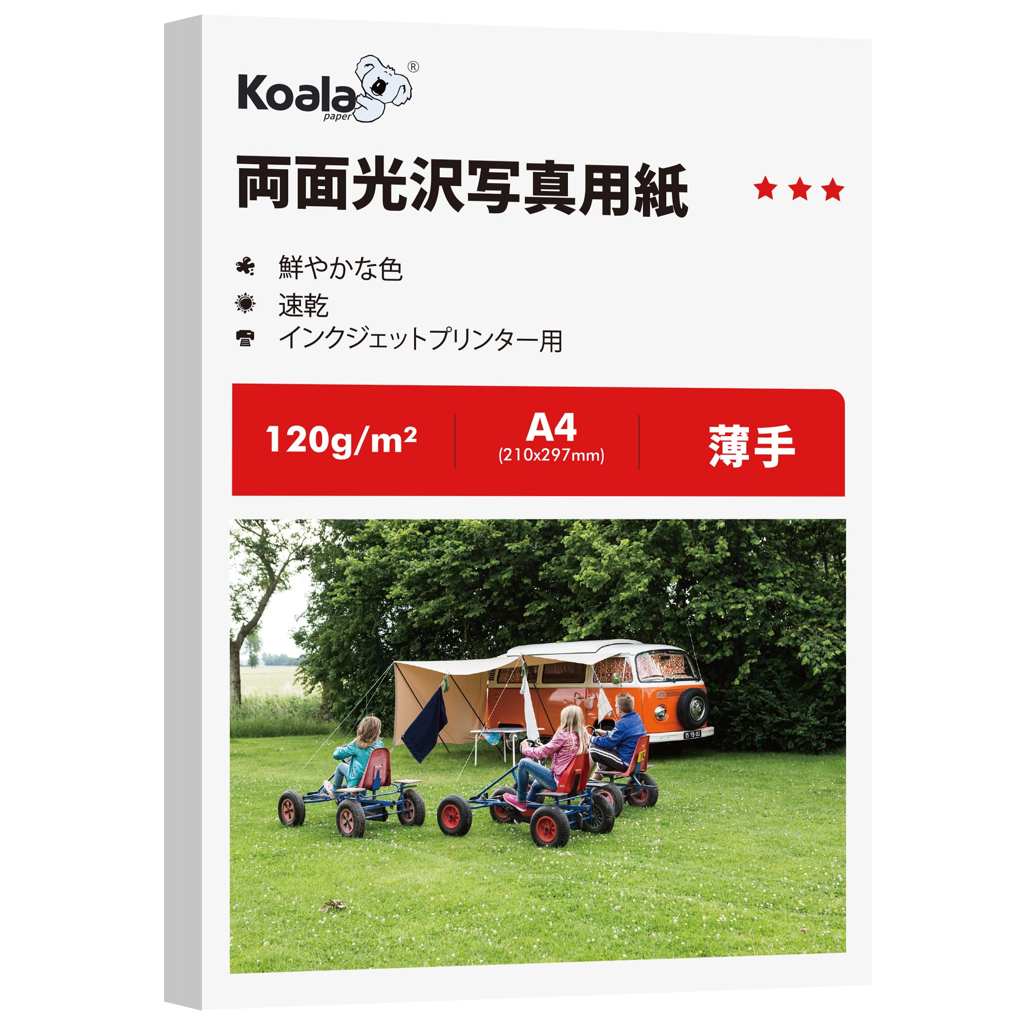 Koala きれいな光沢紙 両面印刷 インクジェット写真用紙 0.15mm 薄手 A4 50枚 インクジェットプリンター用紙