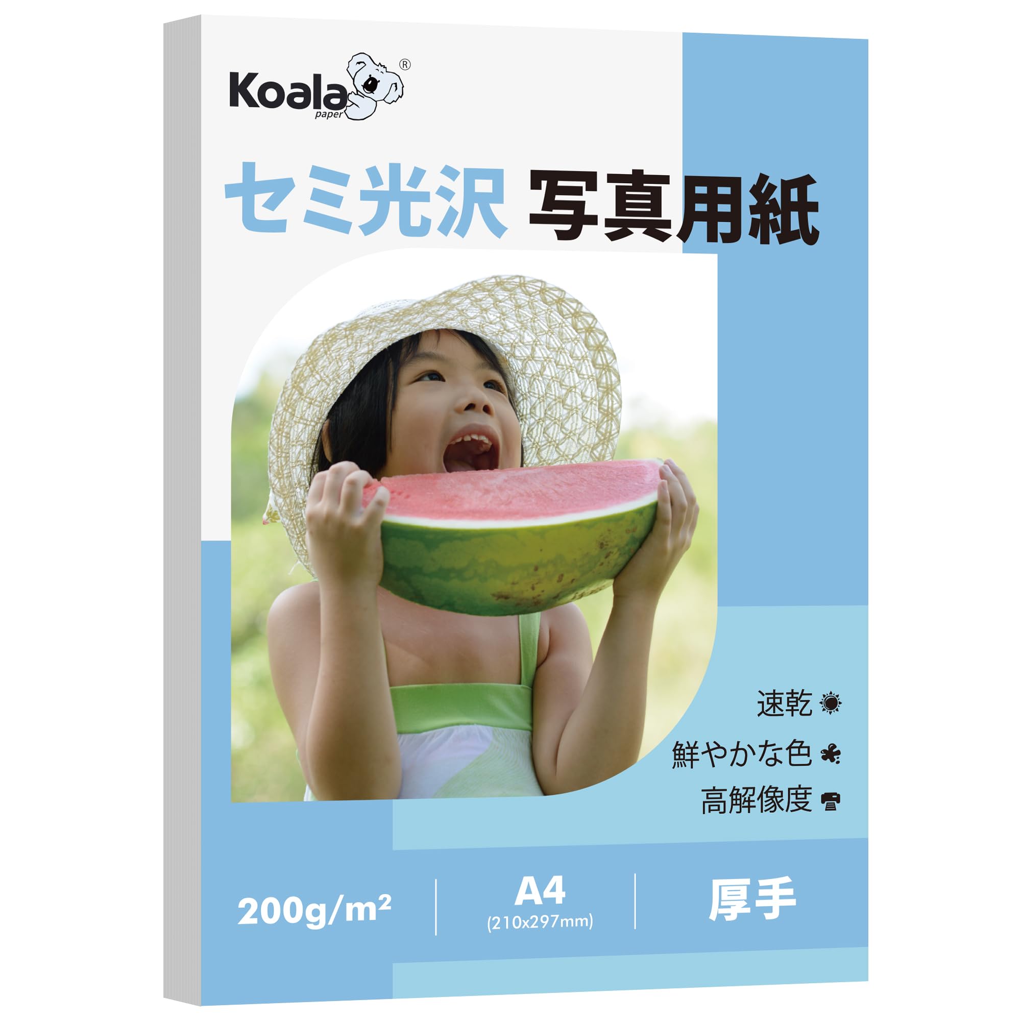 Koala セミ光沢写真用紙 きれいな半光沢紙 0.23mm A4 50枚入り 片面印刷 インクジェットやレーザープリンターに対応