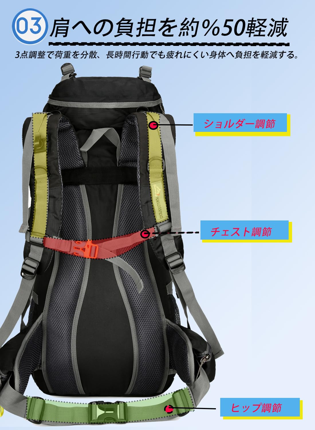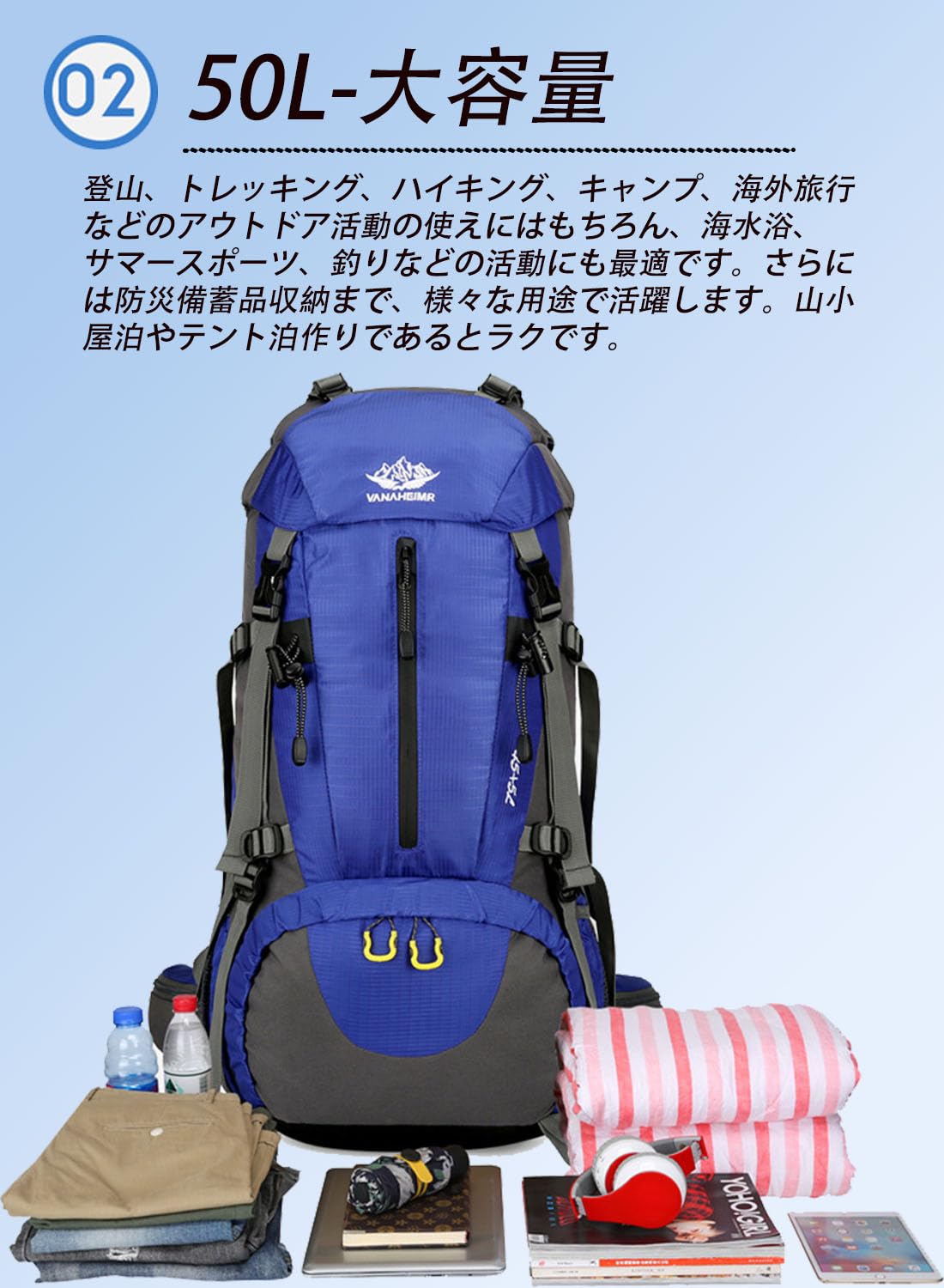 [YuJoyYe] 登山 リュック アウトドアバッグ 50L 登山用バッグ キャンプリュック バックパック ザック リュックサック アウトドア/キャンプ 災害用 防水 大容量 軽量 耐久性 旅行 ハイキング スポーツ 耐震 雨対策 多機能 男女兼用