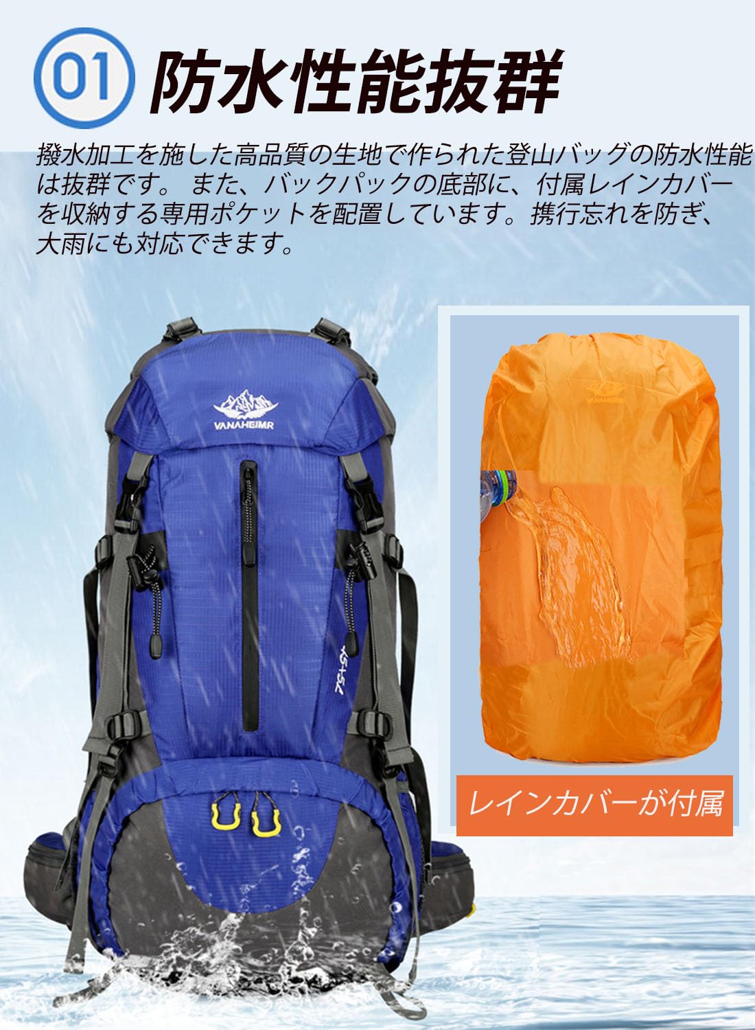 [G4Free] 登山リュック 50l バックパック 大容量 レインカバー付き リュック メンズ 防水 多機能 ディバッグ 防災 アウトドア キャンプ ハイキング