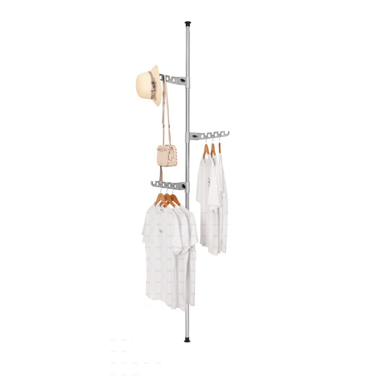 RUB 突っ張り室内物干しポール 簡単ワンタッチ取付 室内物干し つっぱり式 物干しポール ハンガーアーム 洗濯物干し 簡単組み立て ハンガー掛け 高さ110~310cm (ホワイト, 6段ハンガー掛け)
