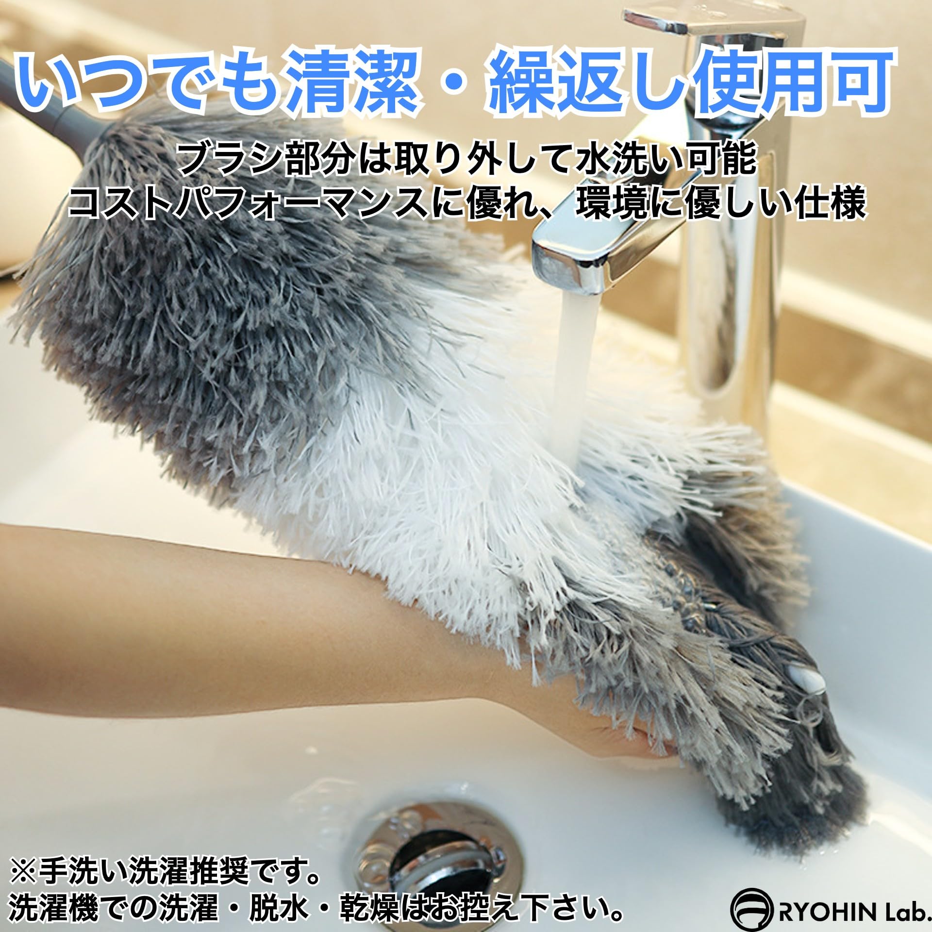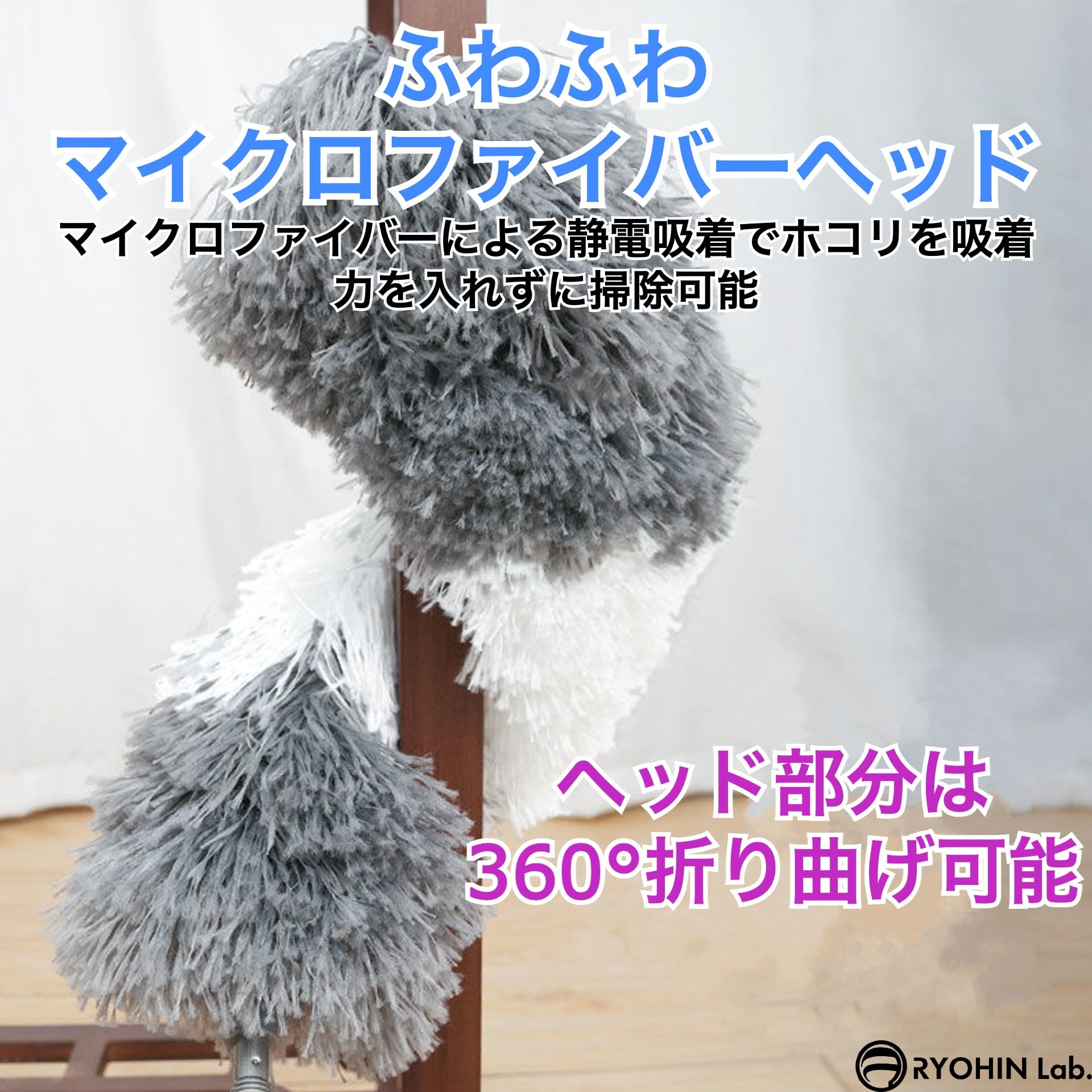 RYOHIN Lab.(良品ラボ) ホコリ取り ハンディモップ 長い 2.8m 伸縮可能 高所 掃除 はたき 洗える 静電気 マイクロファイバー 高い所 吹き抜け シーリングファン 天井 (本体セット1個)