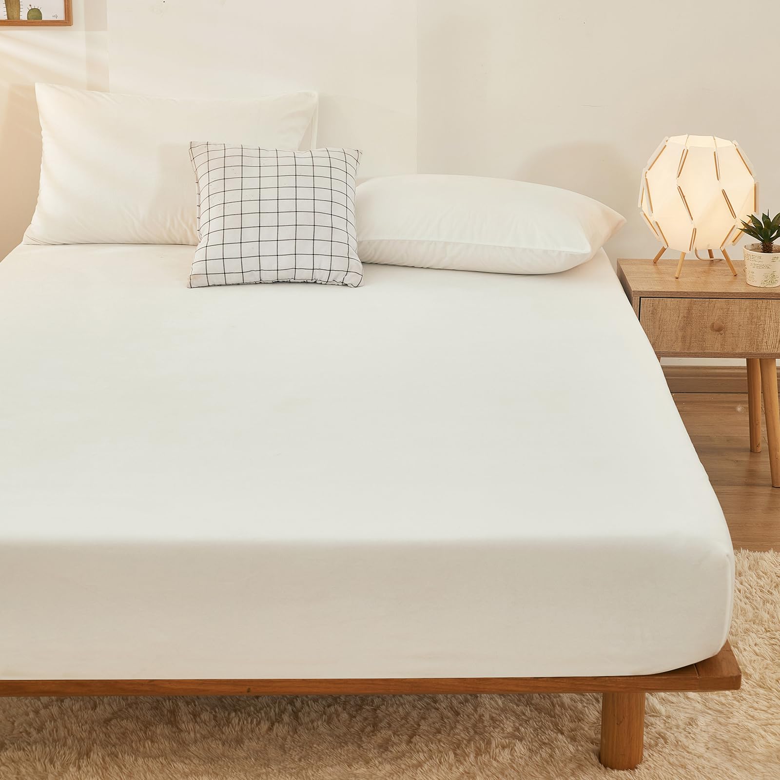 ボックスシーツ ベッドカバー クイーン 周囲ゴムフィット式 マイクロファイバー 冬あったかい 無地 ホワイト 160×200×30cm