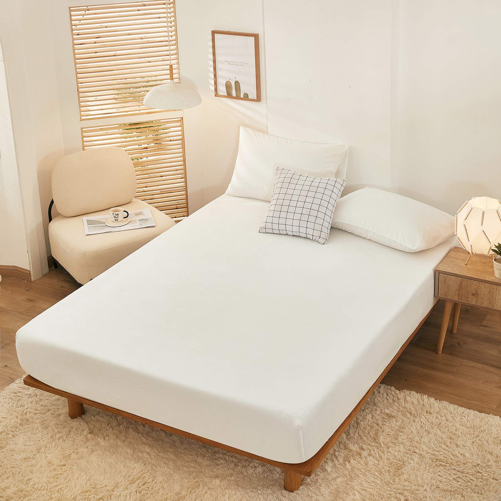 ボックスシーツ セミファミリー オールシーズン シワになりにくい 吸汗速乾 寝汗発散 色落ちない 全周ゴムバンド付 ベッドシーツ マットレスカバー マチ部分約30センチ 抗菌防ダニ(セミファミリー・220×200cm,ホワイト)