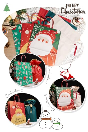 【バイカラー・様々なシーンで活躍】 ラッピング 紙袋 プレゼント ギフトラッピング 袋 プレゼント ラッピング 袋 特大 大 包装袋 プレゼント袋 大きい 誕生日 ギフト ギフトバッグ ギフト袋 プレゼント用 小 ラッピング用品 可愛い 小さい (クリスマスセット(紙袋*3+巾着袋*3))