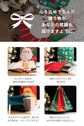 LEMESO クリスマス ラッピング 袋 紙袋 手提げ袋 12枚入 クリスマス 袋 プレゼント 袋 ギフト ラッピング 包装 らっぴんぐ袋 クリスマスプレゼント袋 ギフト袋 包装袋 ギフトバッグ 平手紐