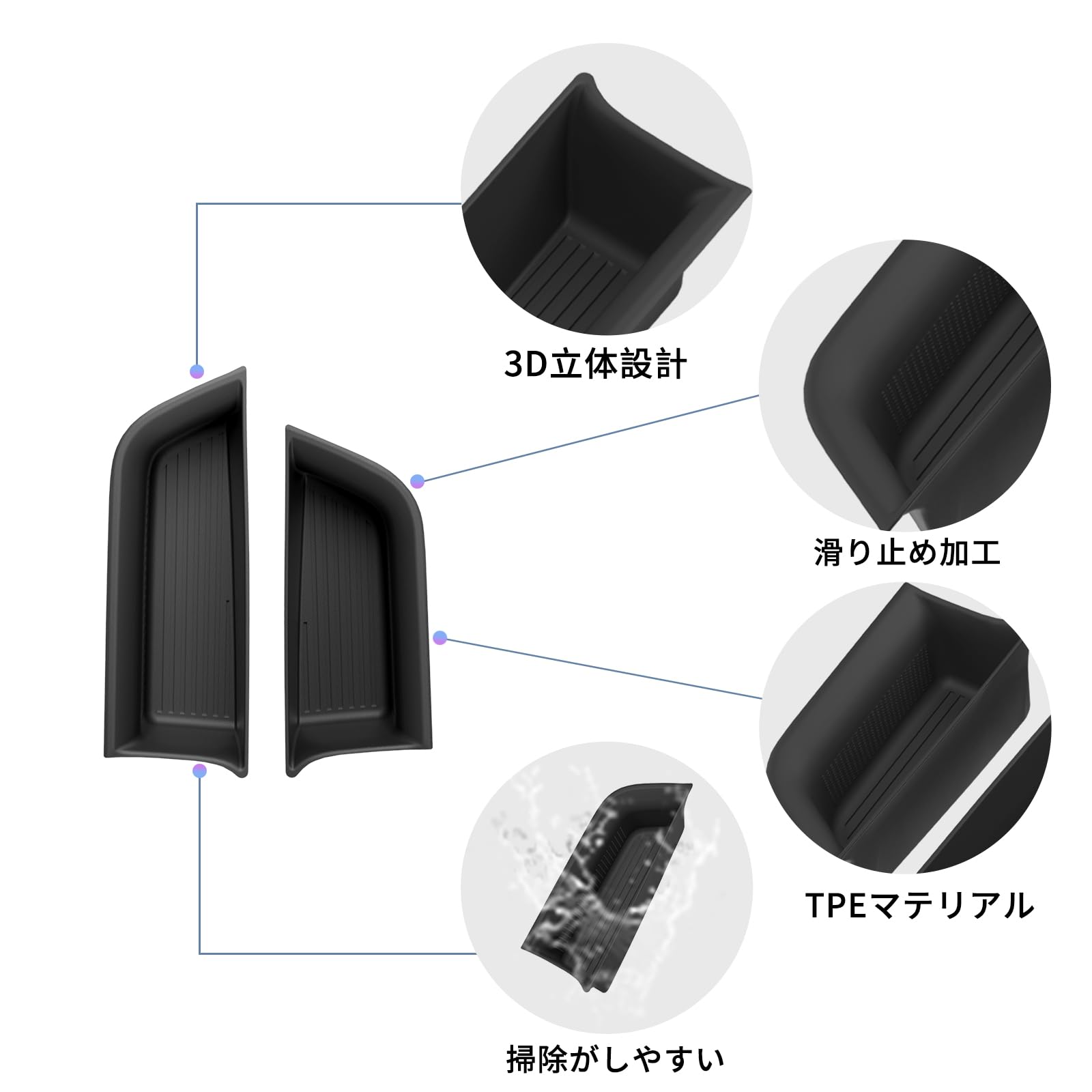 Auto Spec トヨタ 新型 アルファード ヴェルファイア 40系 に適合 コンソールボックス コンソールトレイ 座席下ボックス 2列目シート下トレイ 収納トレイ 収納ボックス 小物入れ TPE素材 滑り止め 収納スペース保護 カスタムパーツ インテリア アクセサリー 2個入り (ブラック)