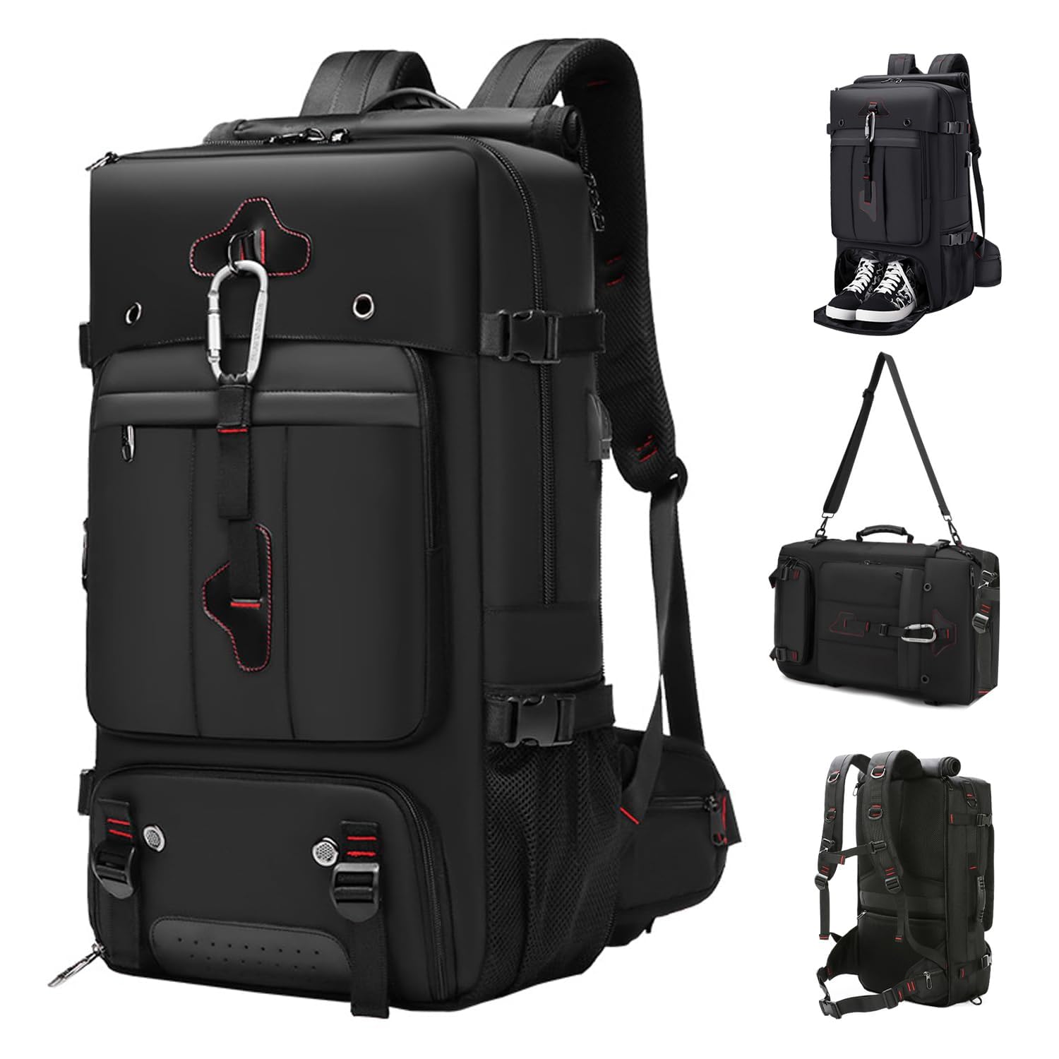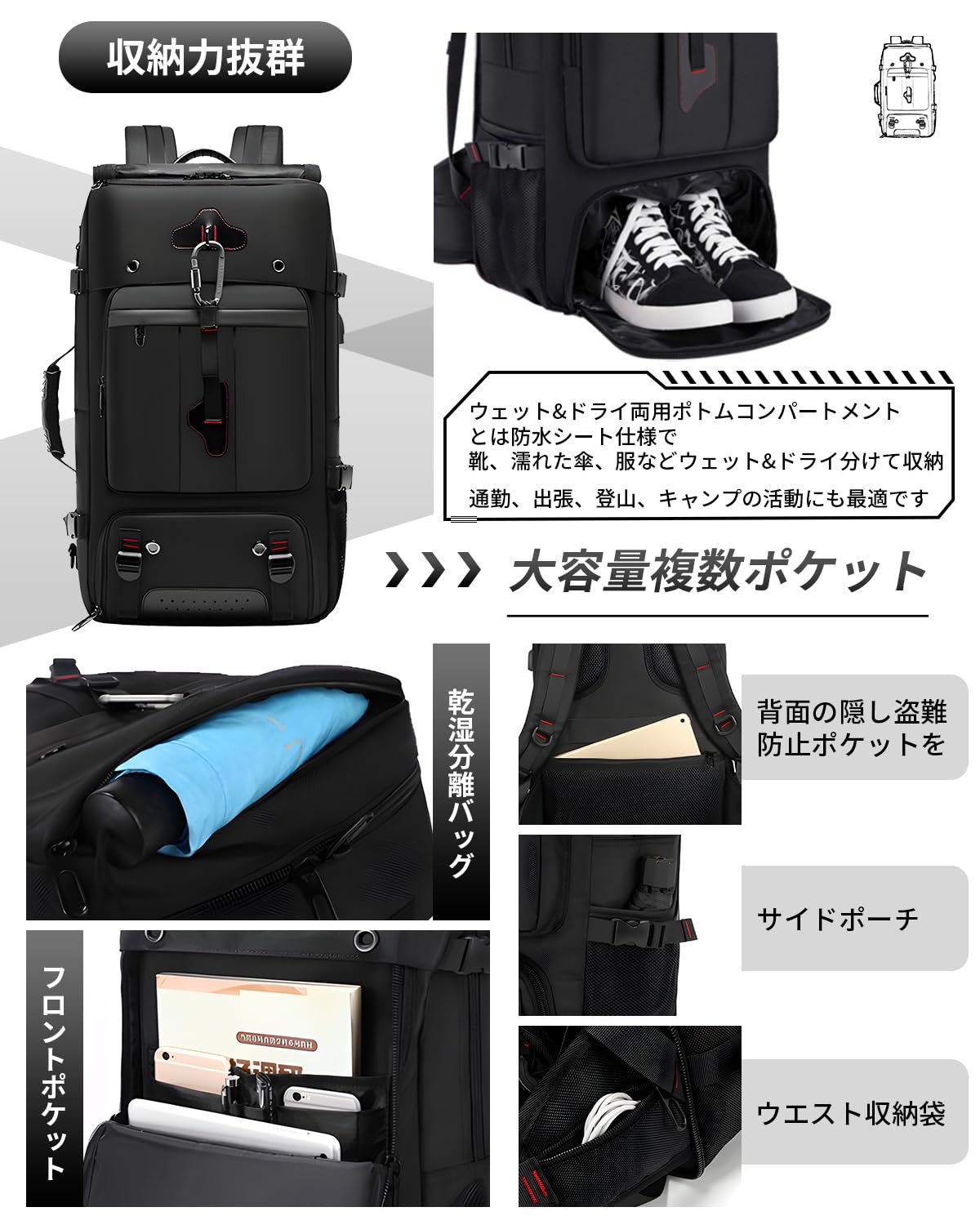 [Yukiyumi] リュックサックメンズ リュック 大容量 ビジネスリュック拡張可能 撥水加工 35L PCリュック 15.6インチPC入れ可能 A4対応 USBポート バックパック 撥水加工 高校 通勤 通学 出張 旅行 アウトドア 男女兼用 (ブラック2)