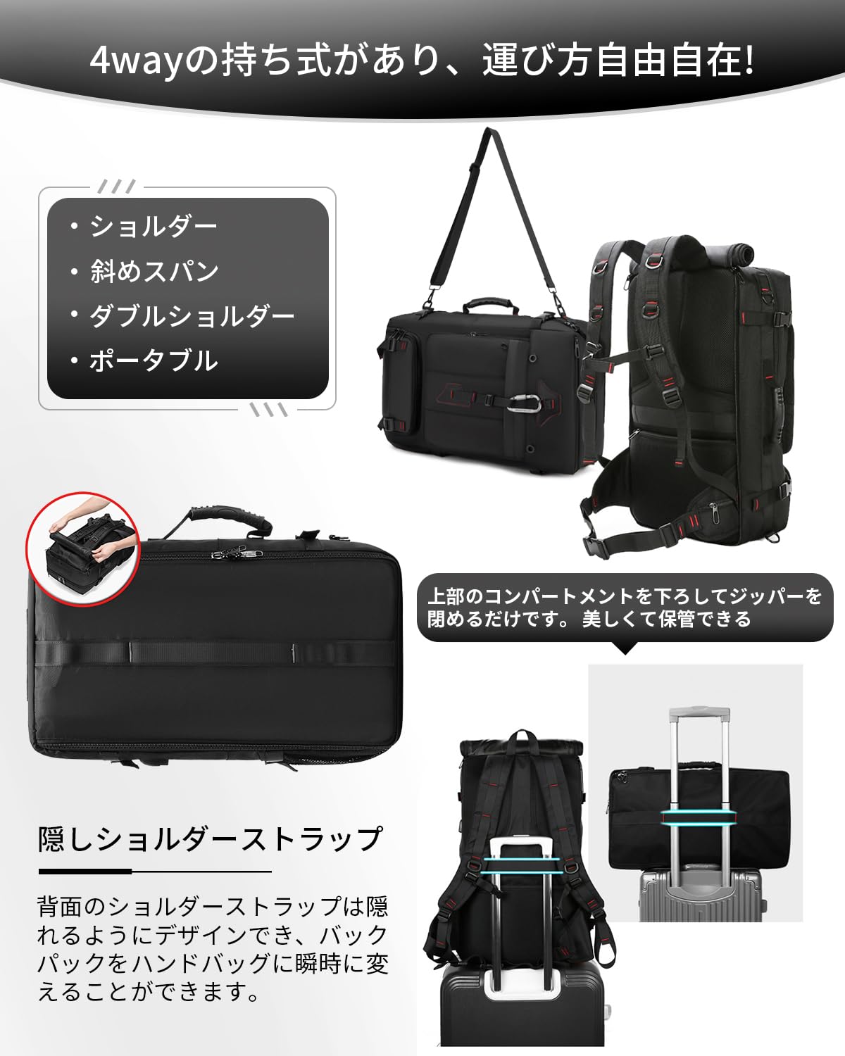 [VENDAGO] リュック 大容量 旅行 ビジネスリュック 30L 大容量 リュックサック 機内持ち込みメンズ メンズ バックパック 防水17インチPC レディース リュックサック 耐摩耗性 反射機能 防水 荷物用ベルト USB充電ポート (ライトグレー-01, L)
